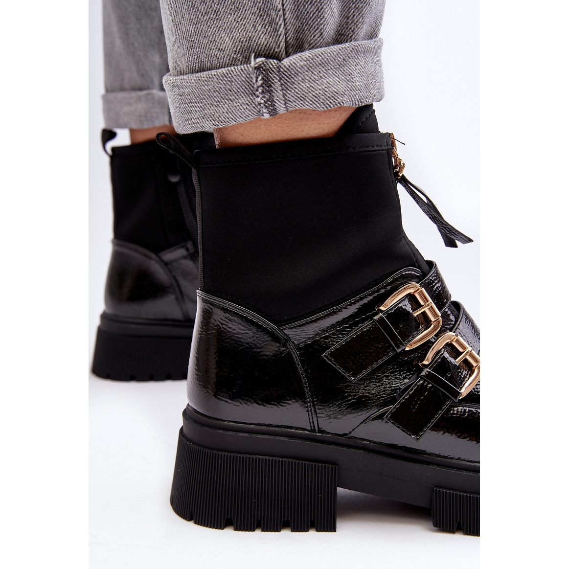 Căptușeala din material textil și branțul izolat cu o pătură de pantofi asigură căldură și confort chiar și în zilele mai reci. Cizmele sunt lacuite, ceea ce le confera o stralucire eleganta si le face sa se potriveasca perfect cu diverse stiluri - de la casual la mai formale.