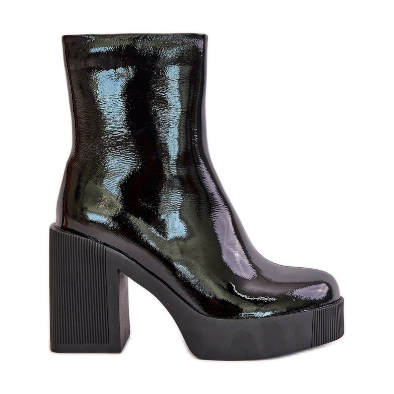 S.Barski S.Barski Cizme de damă din piele patentată pe un toc înalt masiv izolate D&A CR42-189 negru