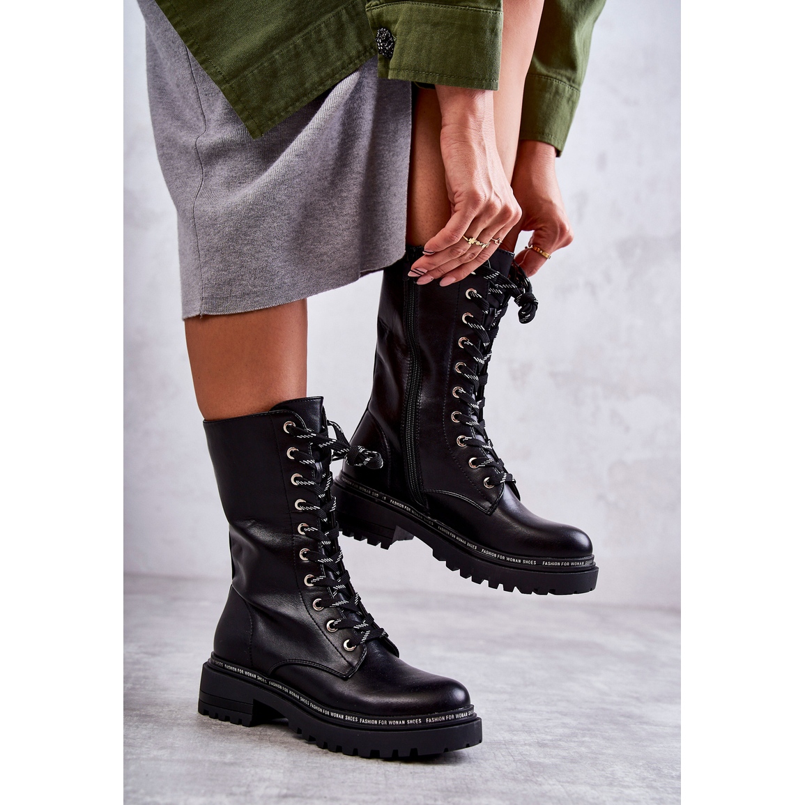 Detalii: PG1 Cizme de dama inalt calduroase Legate Negru Darla