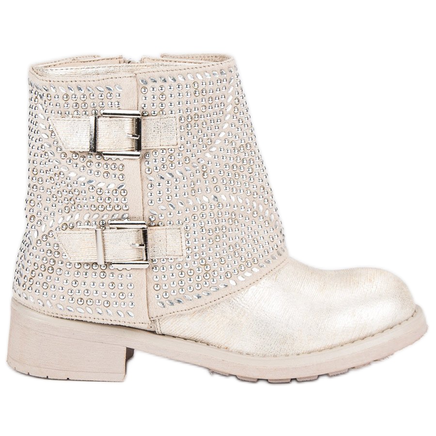 Culoarea eleganta maro a cizmelor se incadreaza perfect in tendinte, iar detalii suplimentare, precum strasuri si accente metalice, le dau un caracter unic. Tocul plat de 3,5 cm face ca ghetele să fie confortabile și practice, perfecte atât pentru coafarea de zi cu zi, cât și pentru ținutele mai elegante.