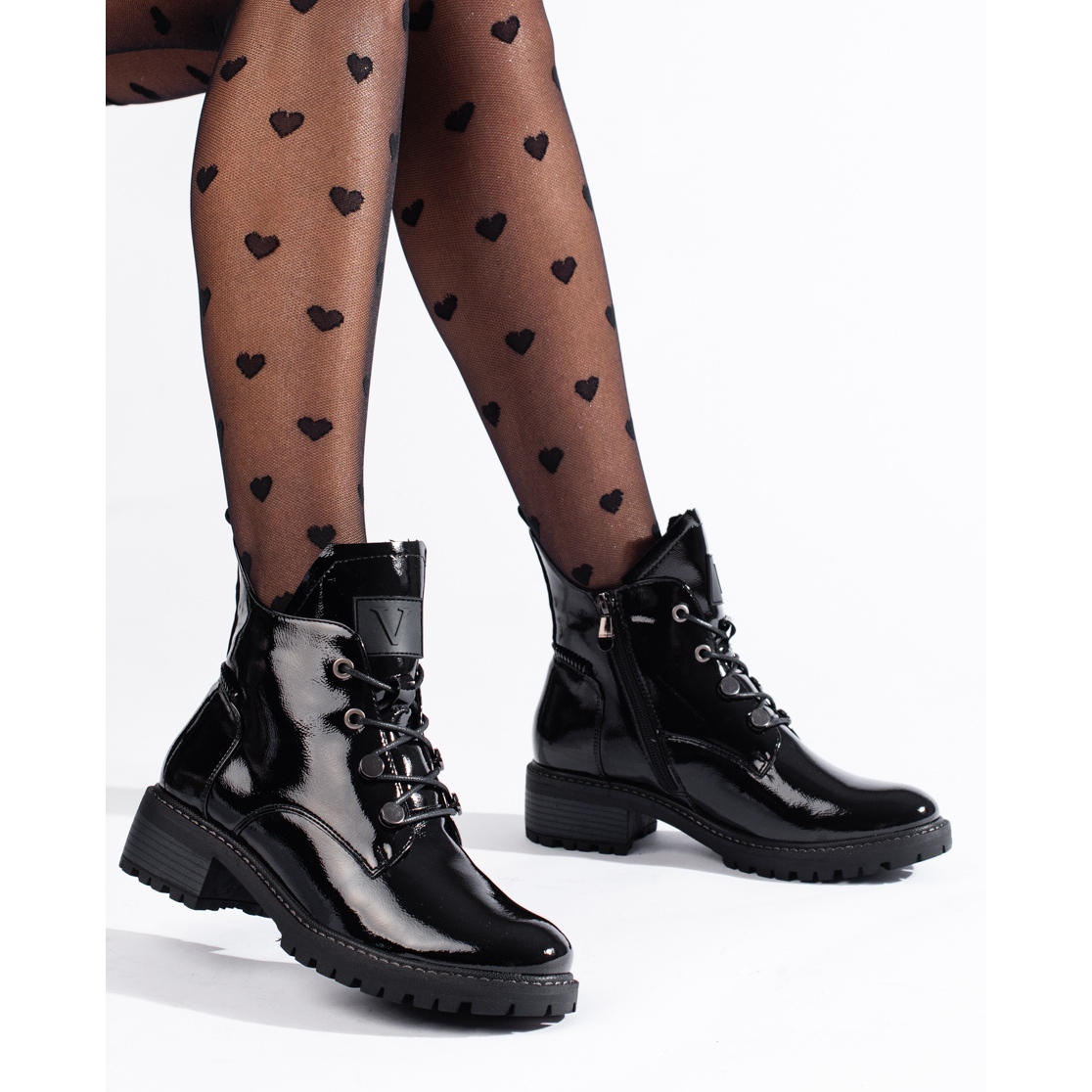 Botinele de damă negre lacuite de la brandul Vinceza sunt sinonime cu stilul urban combinat cu o notă de eleganță. Este alegerea perfectă pentru femeile moderne care caută funcționalitate și design clasic în încălțămintea lor de zi cu zi.