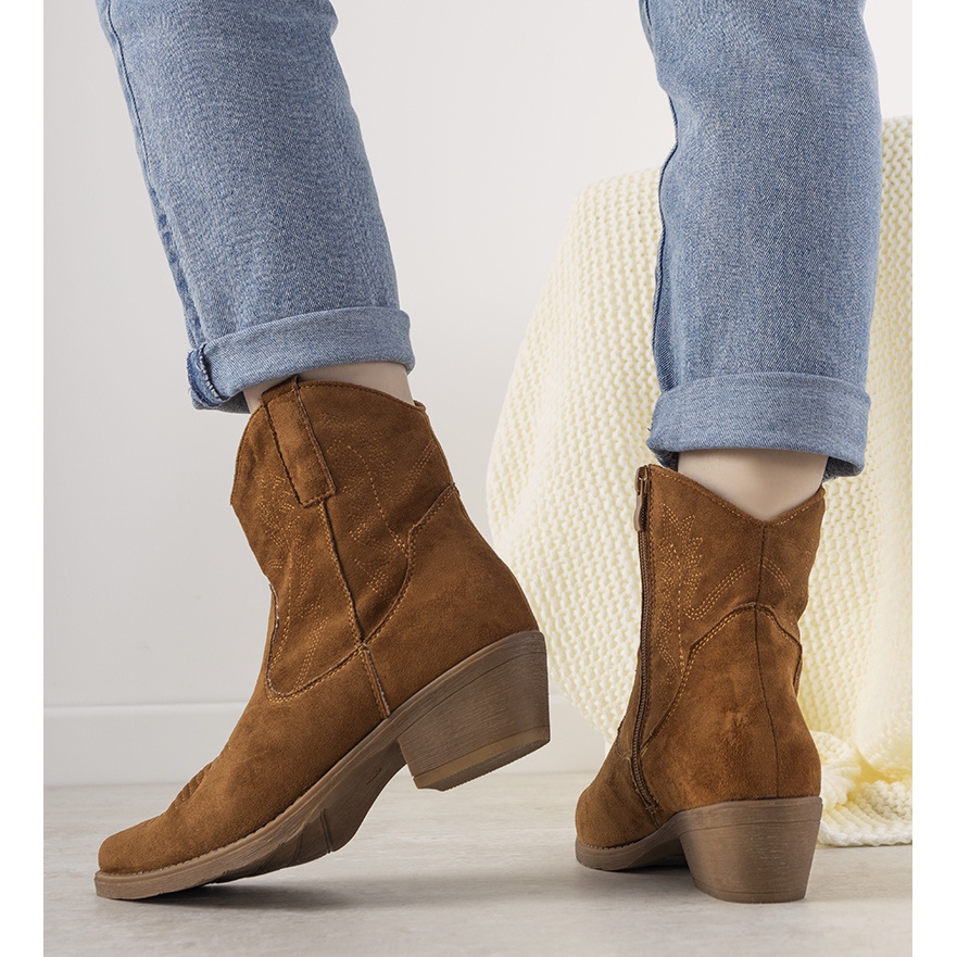 Fața lor este decorată cu cusături subtile care subliniază caracterul cowboy al încălțămintei, iar culoarea clasică maro cămilă le face să se potrivească perfect în diverse stiluri - atât cele de zi cu zi, cât și mai elegante.