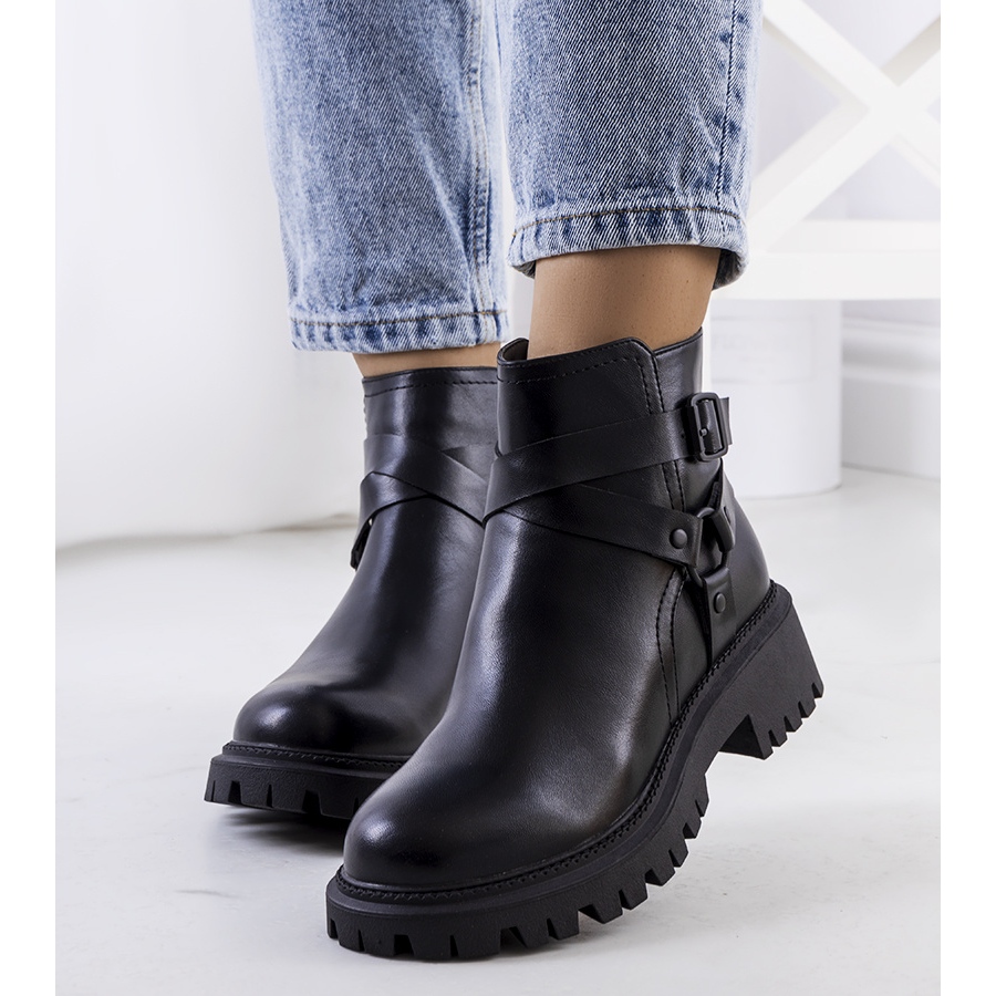 PA1 Meraz - Cizme pentru femei negre care vor apărea orice stilizare. Modelul Meraz combină comoditatea urbană cu un personaj la modă, brut: o talpă a tractorului adaugă gheare și oferă o aderență bună, iar nasul rotunjit și plat, de 4,5 cm călcâie garantează confort în fiecare zi.