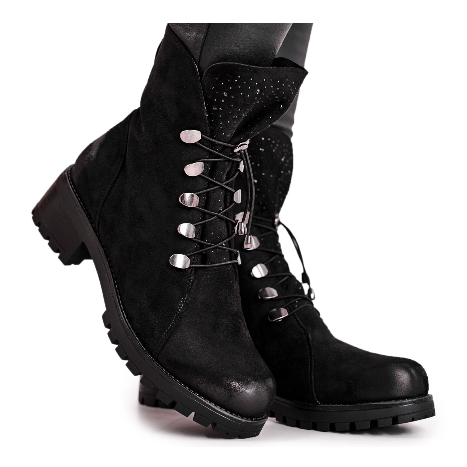 Detalii: S.Barski Cizme de damă Muncitori Bipper negri calzi negru