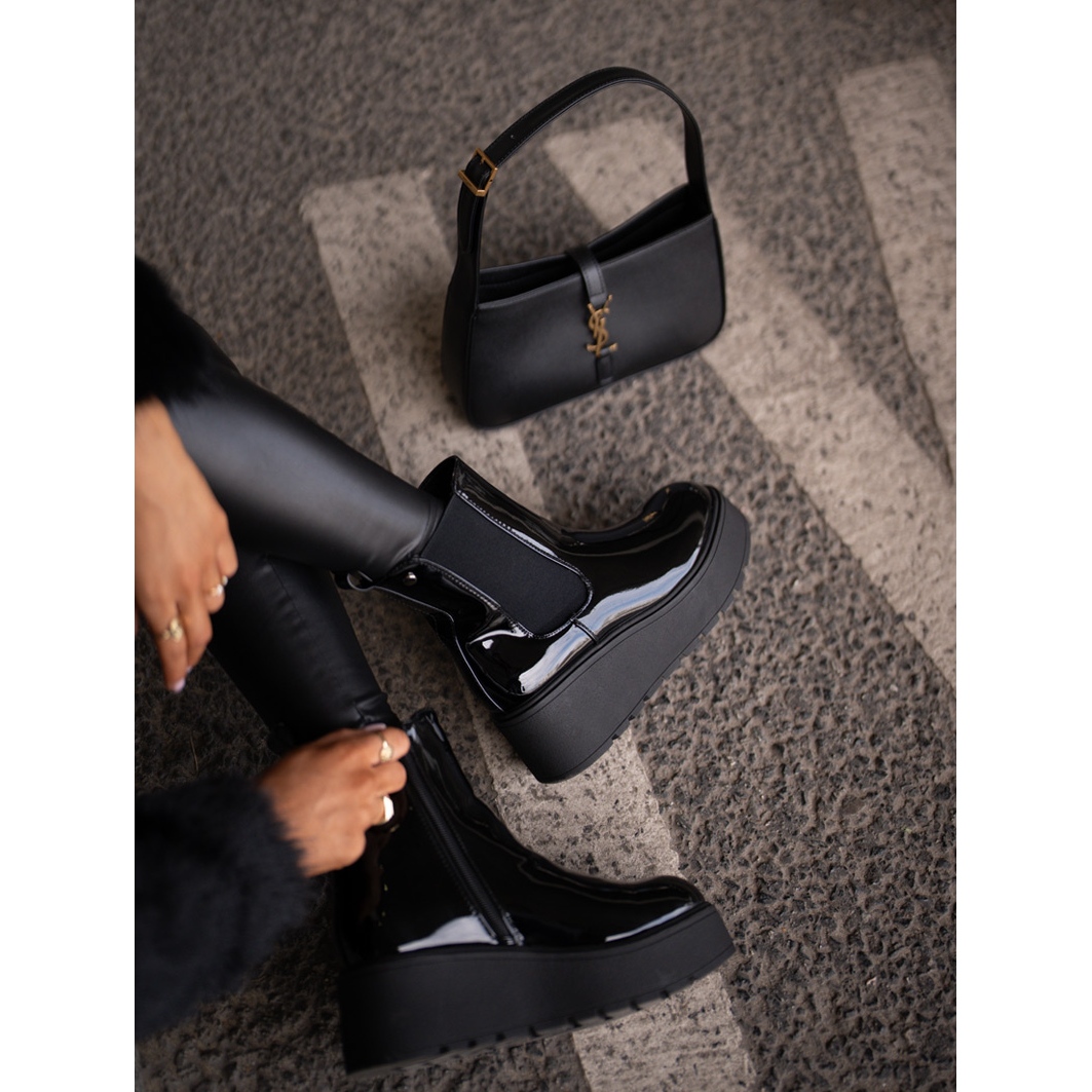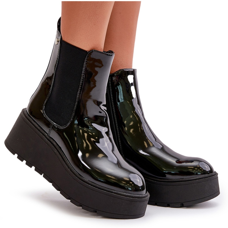 Detalii: Cizme de dama patentate pe platforma si pane izolate negre Wloedia negru