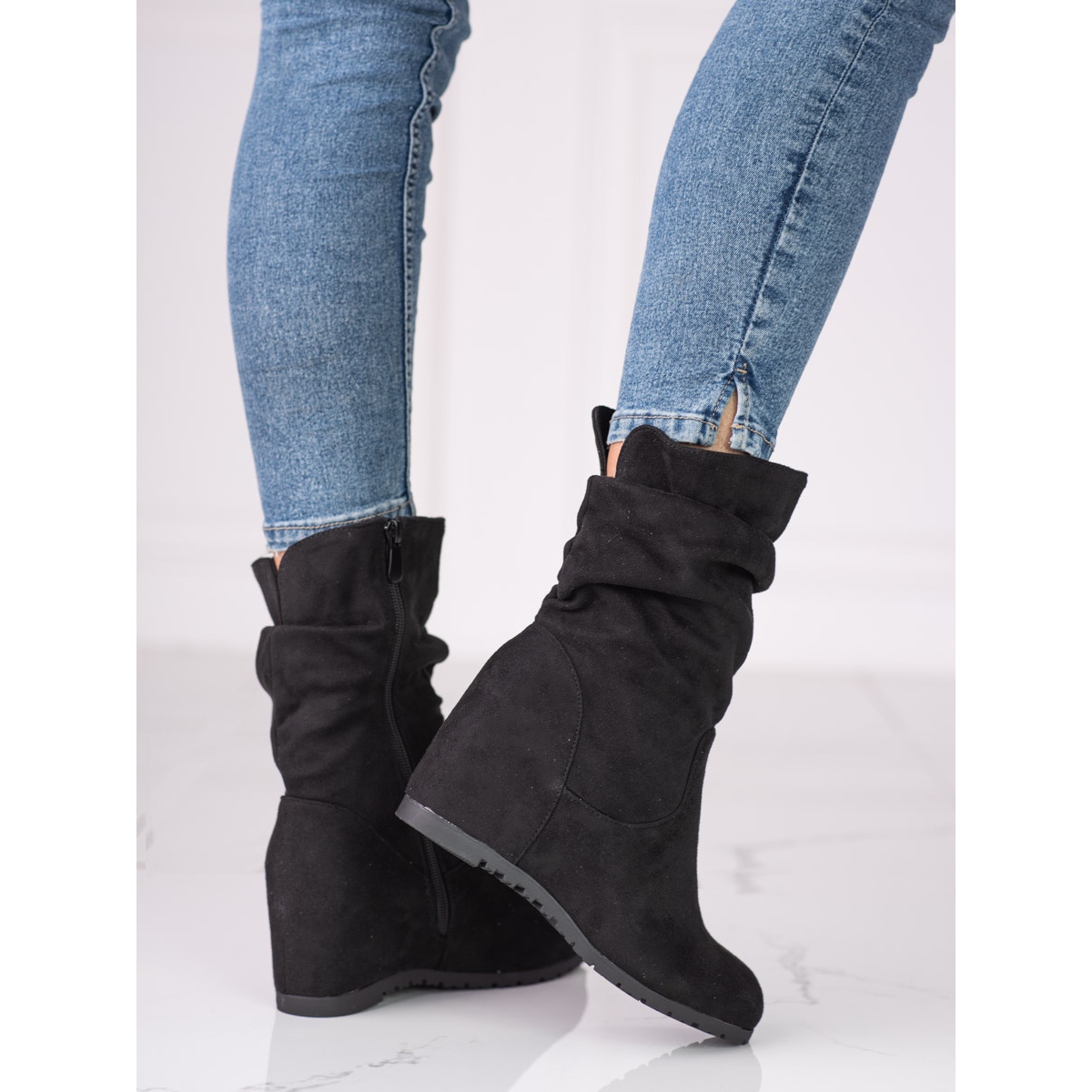 SHELOVET Cizme de damă pe pană Shelovet cu o parte superioară cu volană negru