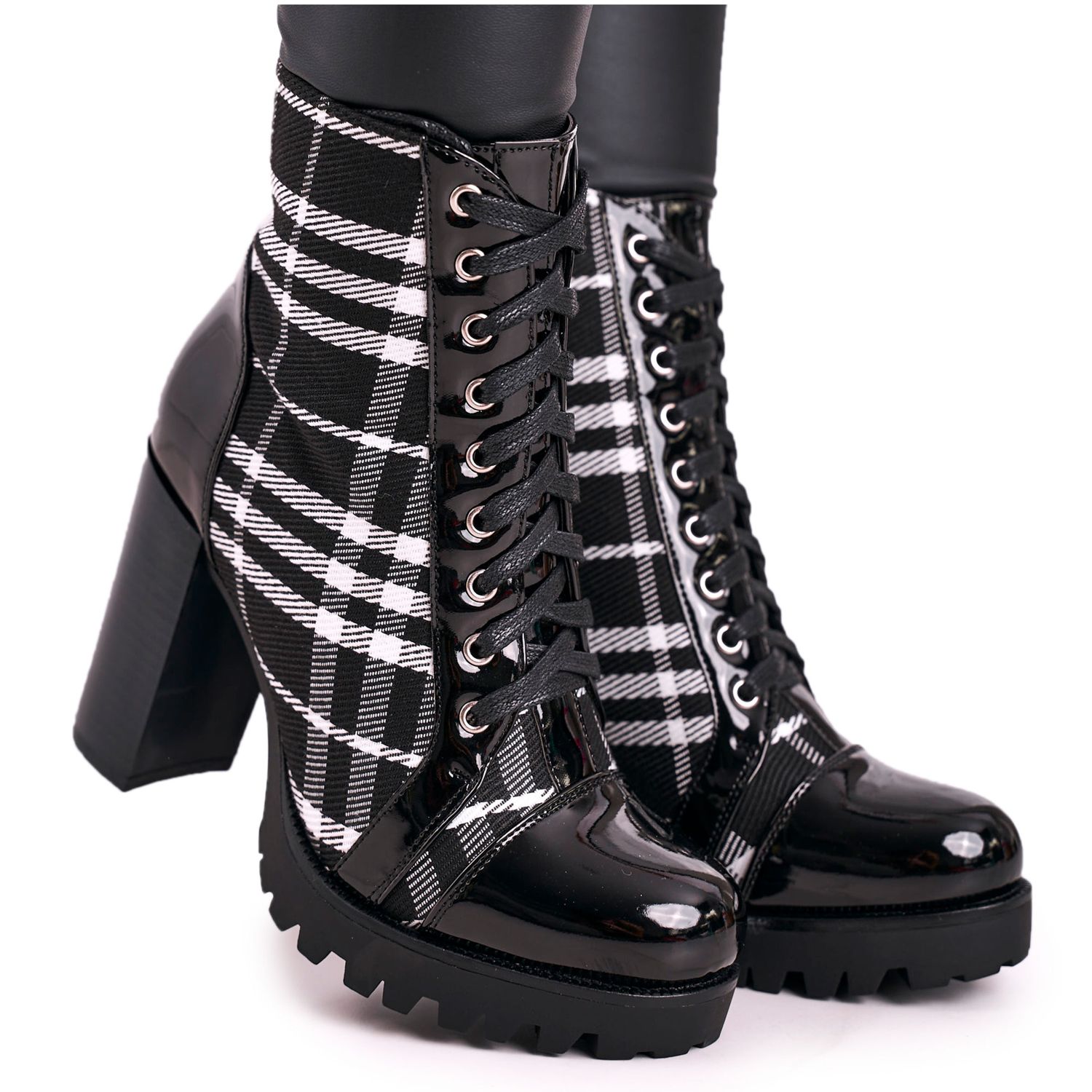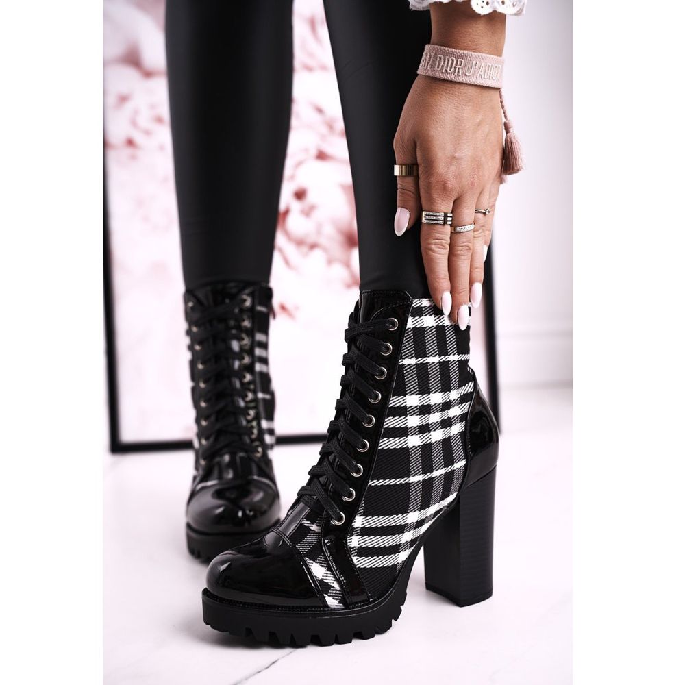 Detalii: PS1 Cizme de damă pe toc cu carouri Blair negru alb