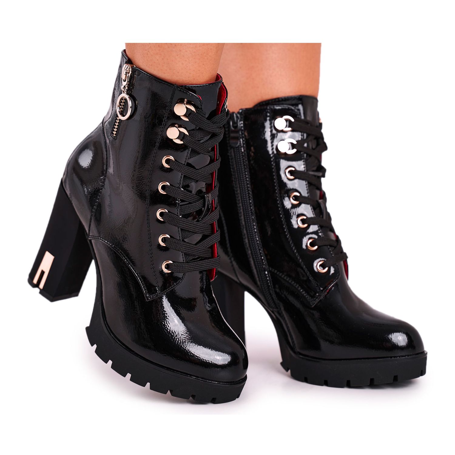 Detalii: FE1 Cizme de damă pe toc înalt lacuit negru Kahina