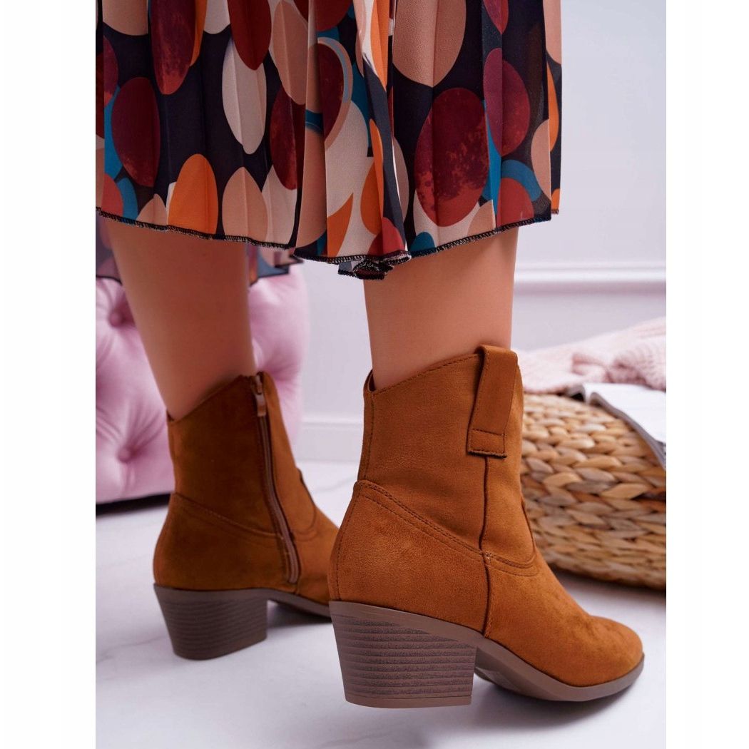 Detalii: BUGO Cizme de damă pe toc plat Cowboy Camel Telifa maro