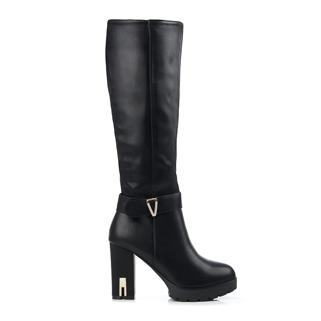 Călcâiul încorporat, rigidizat oferă stabilitate și susținere, iar partea superioară până la genunchi adaugă șic. Datorită vârfului rotund, aceste cizme sunt confortabile, iar izolația le face o alternativă caldă în zilele reci. Un toc inalt de 10 cm adauga o nota de eleganta, iar latimea superioara de 38 cm le face potrivite pentru multe tipuri de corp.