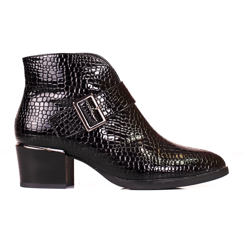 Botinele de damă Shelovet cu toc mic Vinceza sunt o alegere excelentă pentru femeile care caută pantofi de zi cu zi eleganți și confortabili. Fabricate din piele lăcuită de înaltă calitate, arată elegant și la modă. Finisajul negru le face să se potrivească perfect cu diverse stiluri, atât casual, cât și mai formale.