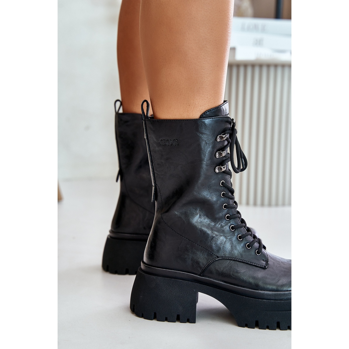 Detalii: Cizme de damă pentru lucrător din piele izolate GOE OO2N4121 Negru