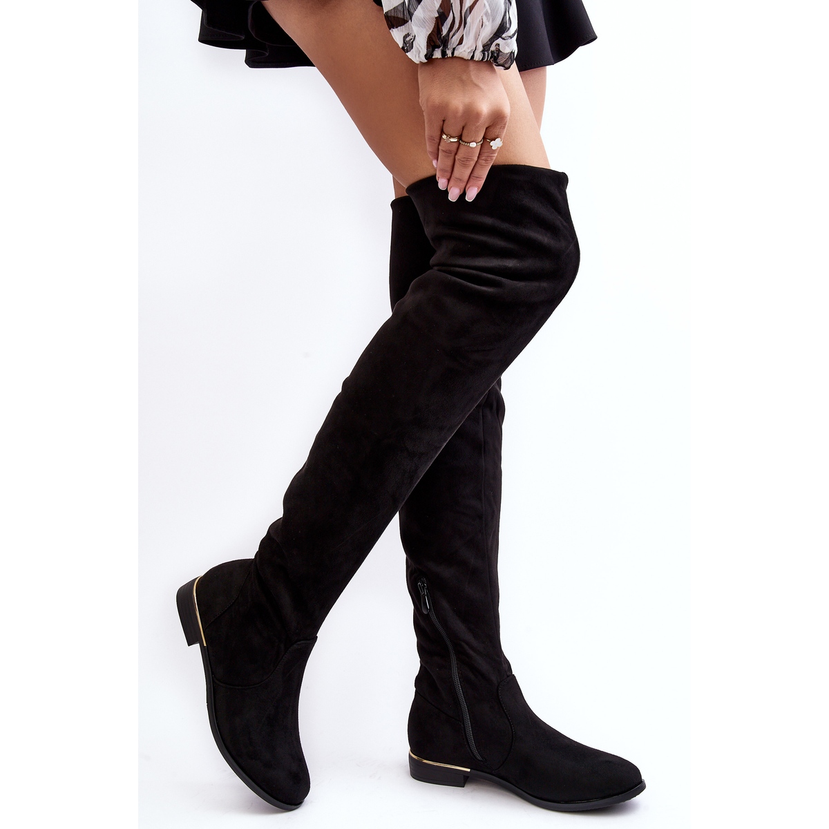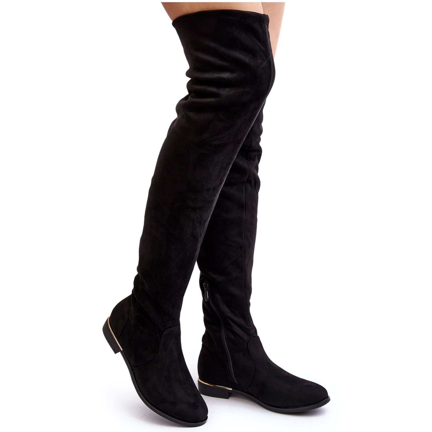 Inna marka Cizme de damă peste genunchi cu toc plat, Bikka negru