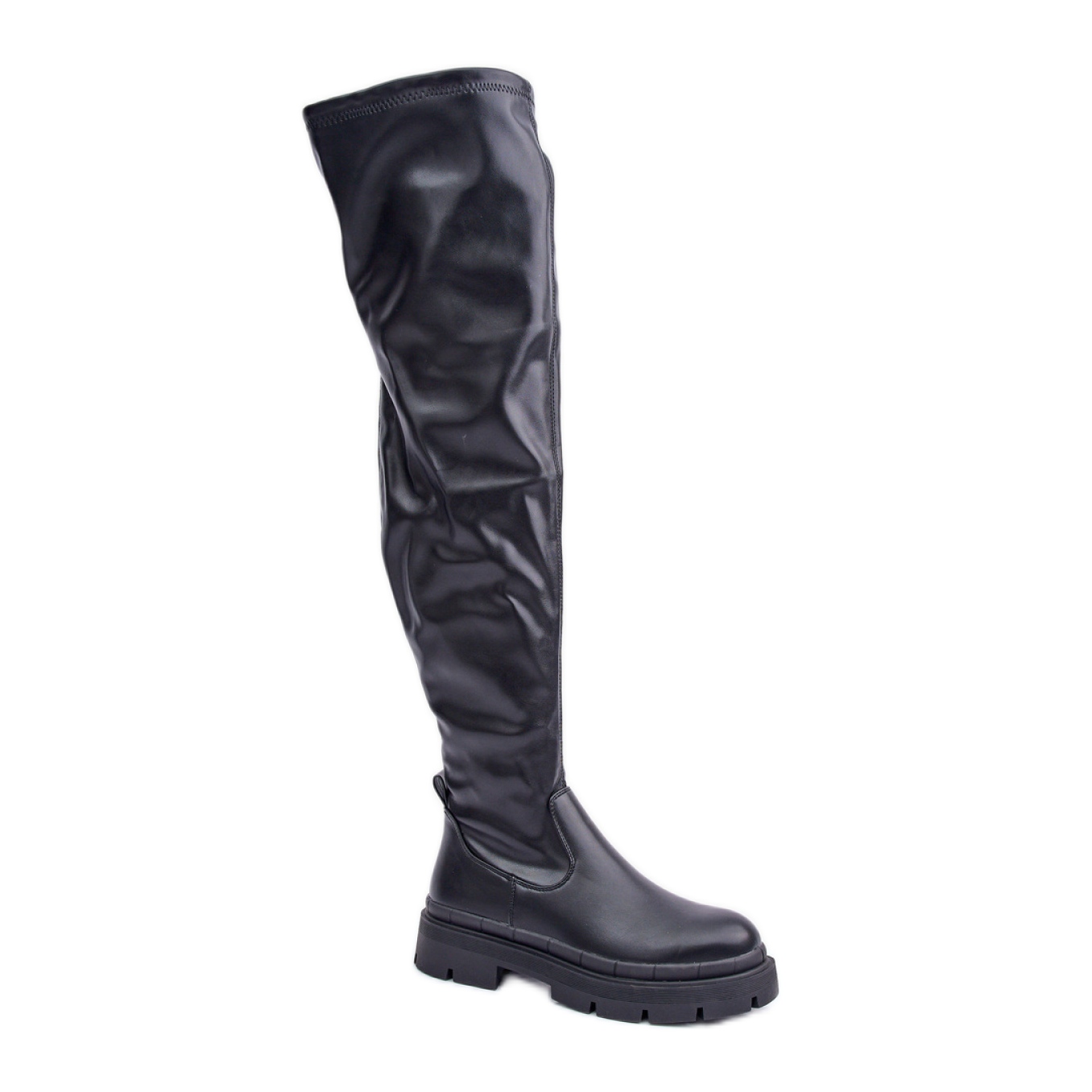 Căutați pantofii perfecți pentru zilele reci? Iată cizmele de genunchi pentru femei pe platformă în negru, care combină eleganța cu confortul! Fabricate din piele ecologică de înaltă calitate, acești muschetari eleganți vor atrage cu siguranță aspect. Nasul lor rotunjit le oferă stil, iar partea superioară ajungând peste genunchi se îmbină fantastic de rochii și fuste.