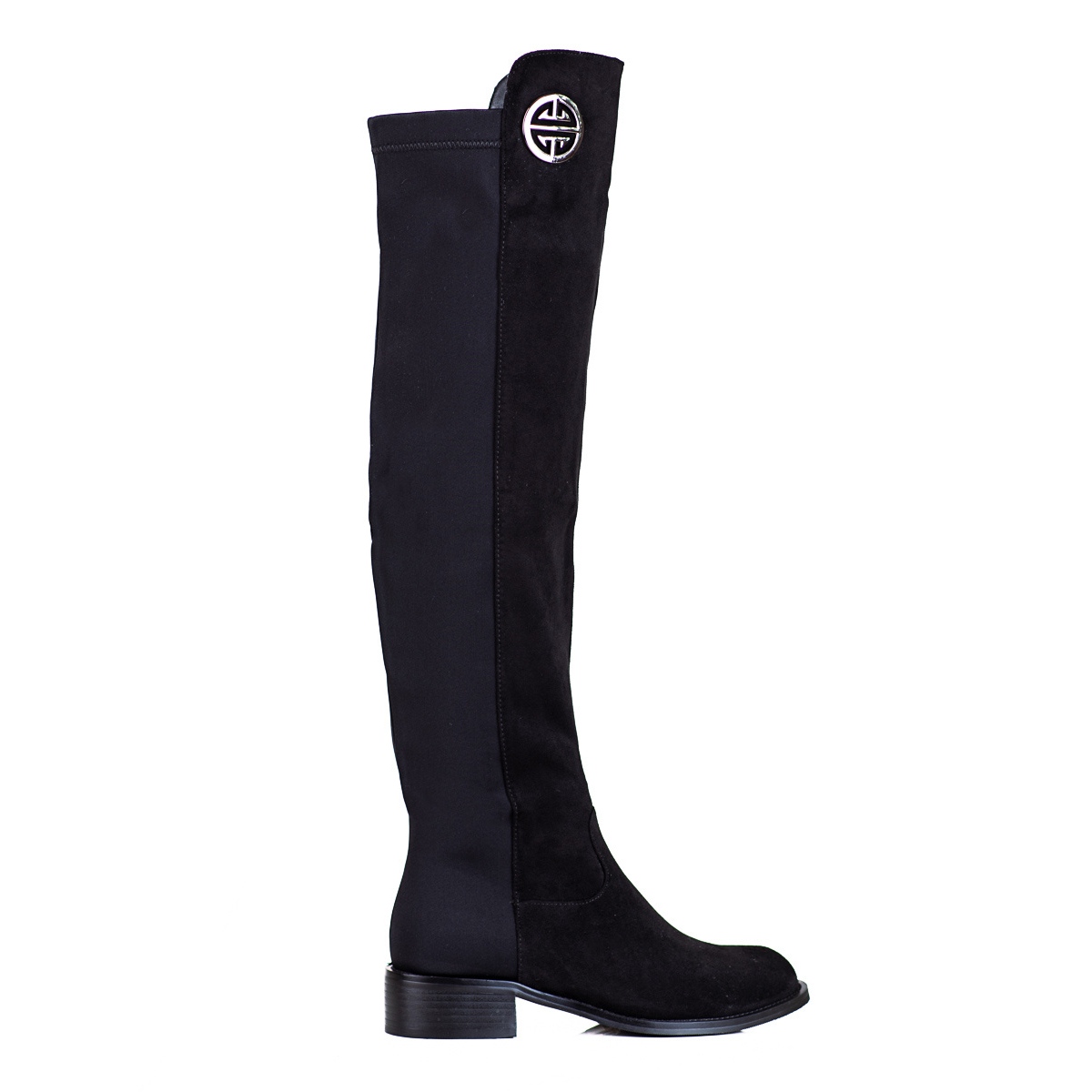 SHELOVET Cizme de damă Shelovet până la coapsă cu toc plat negru
