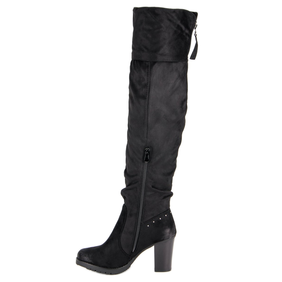Cizmele de dama VINCEZA in negru sunt o optiune ideala pentru femeile care doresc sa combine un look la moda cu confortul. Aceste cizme elegante, deasupra genunchiului, sunt concepute pentru zilele mai reci, iar finisajul lor din piele intoarsa adauga sic.