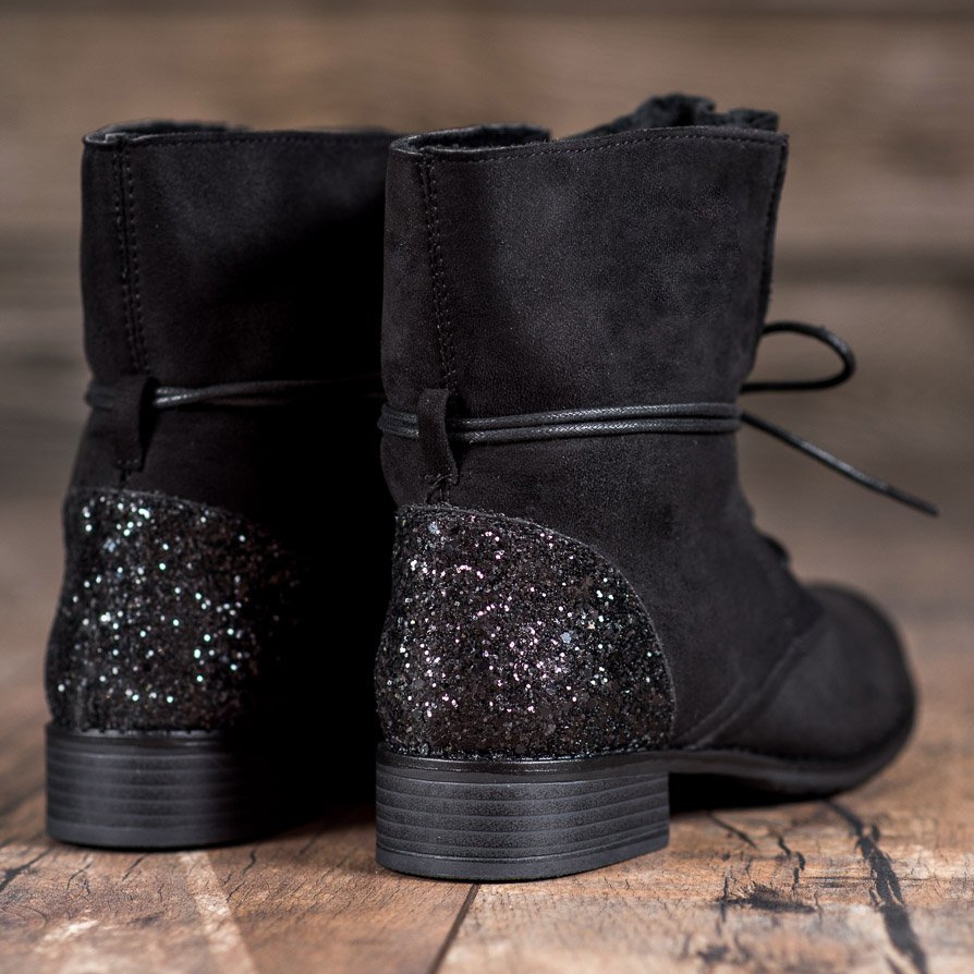 Detalii: S. BARSKI Cizme negre cu dantelă negru