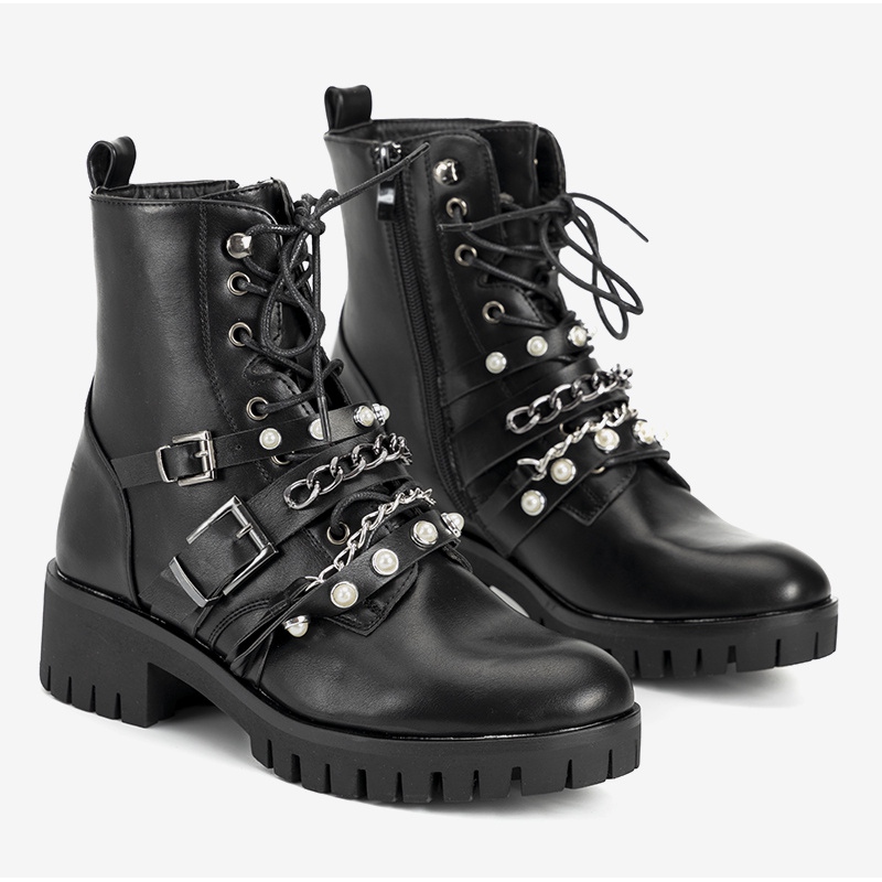 Talpa inalta trapper este un alt avantaj al acestui model, care se incadreaza perfect in ultimele tendinte de toamna si iarna. Decorațiile sub formă de curele și lanțuri impresionante conferă pantofilor un caracter unic, ceea ce îi face o completare perfectă pentru orice stil.
