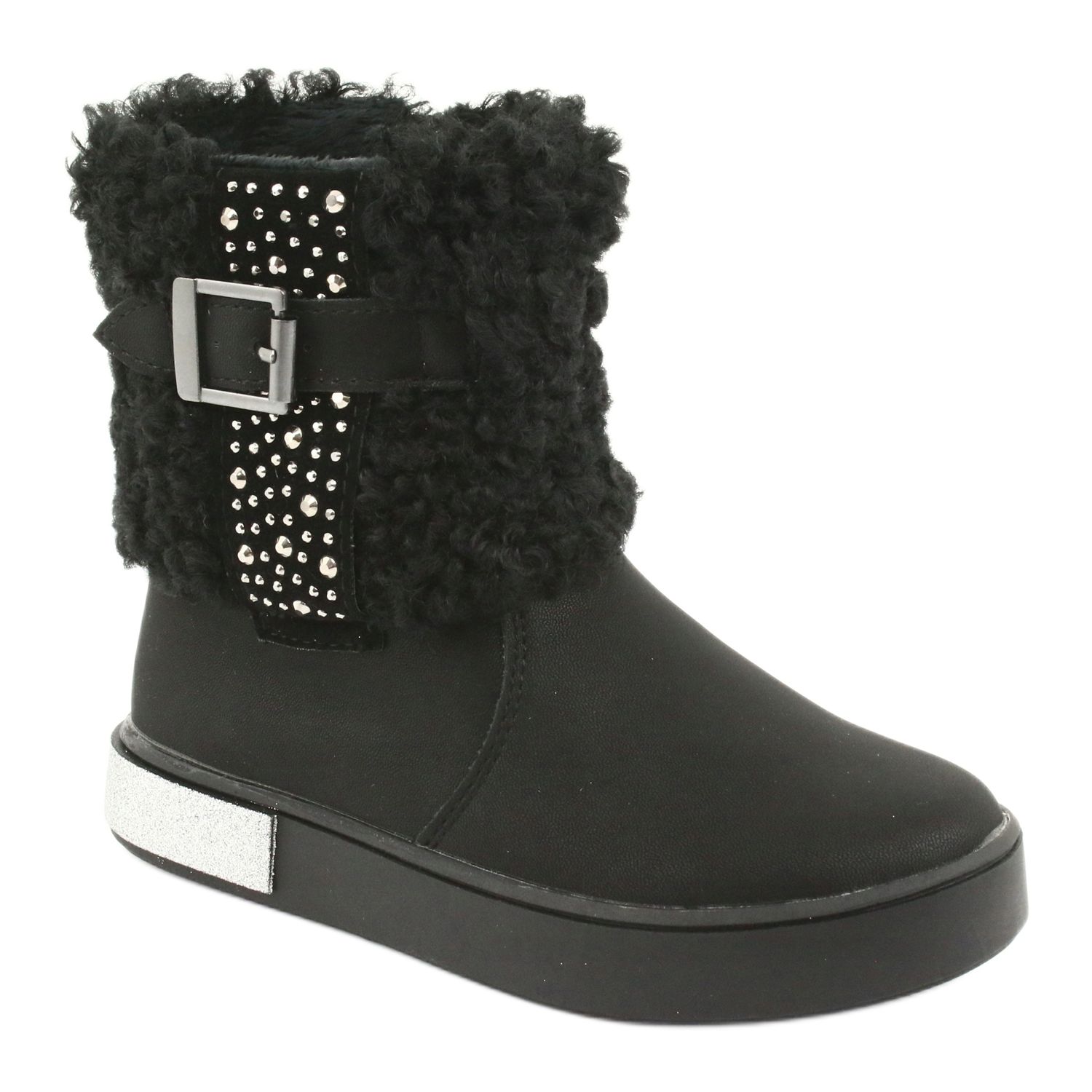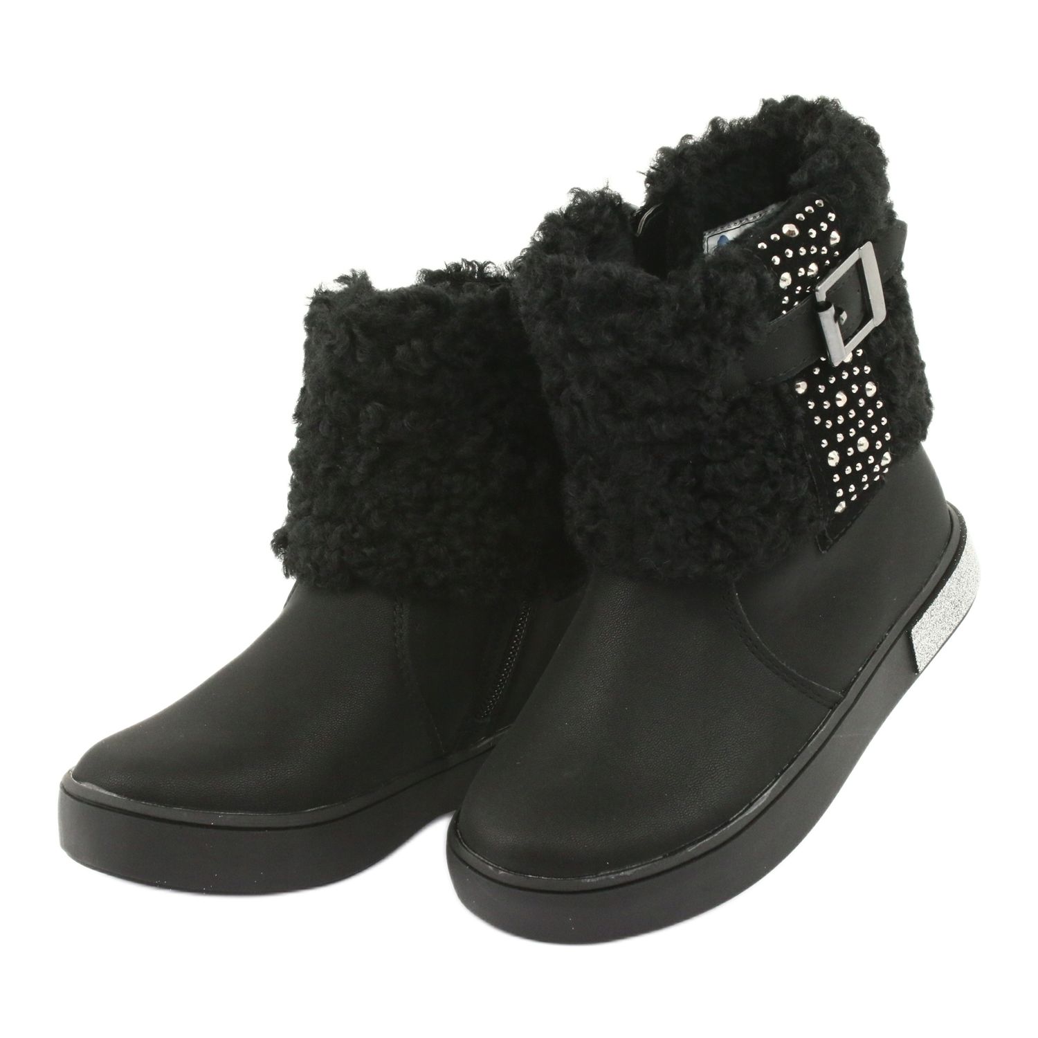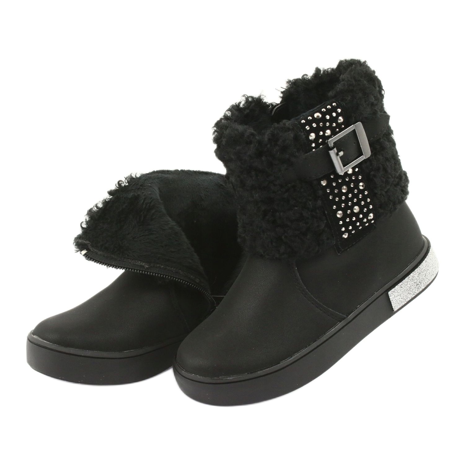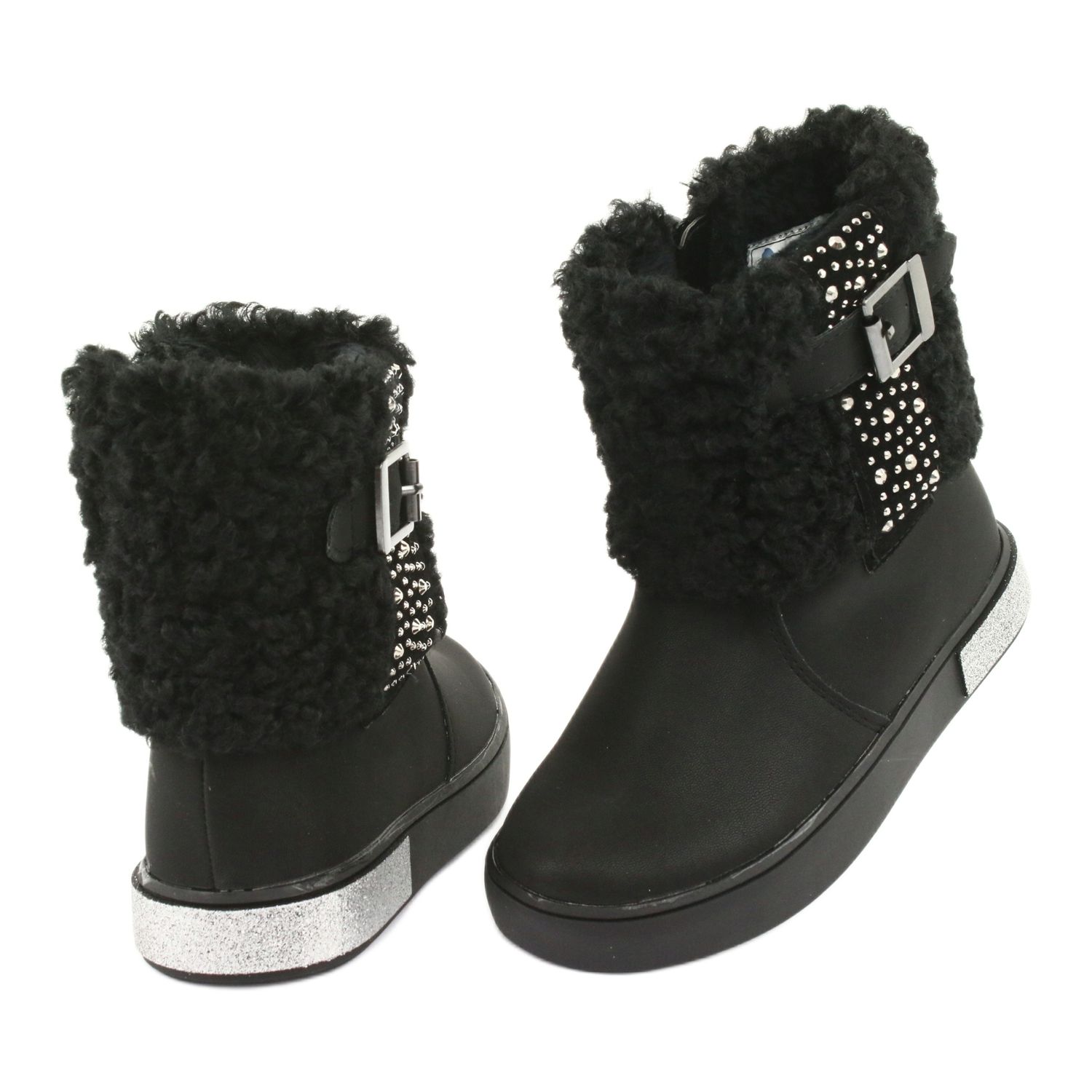 American Club American Club Cizme de fete cu blană GC35 cu paiete negre negru