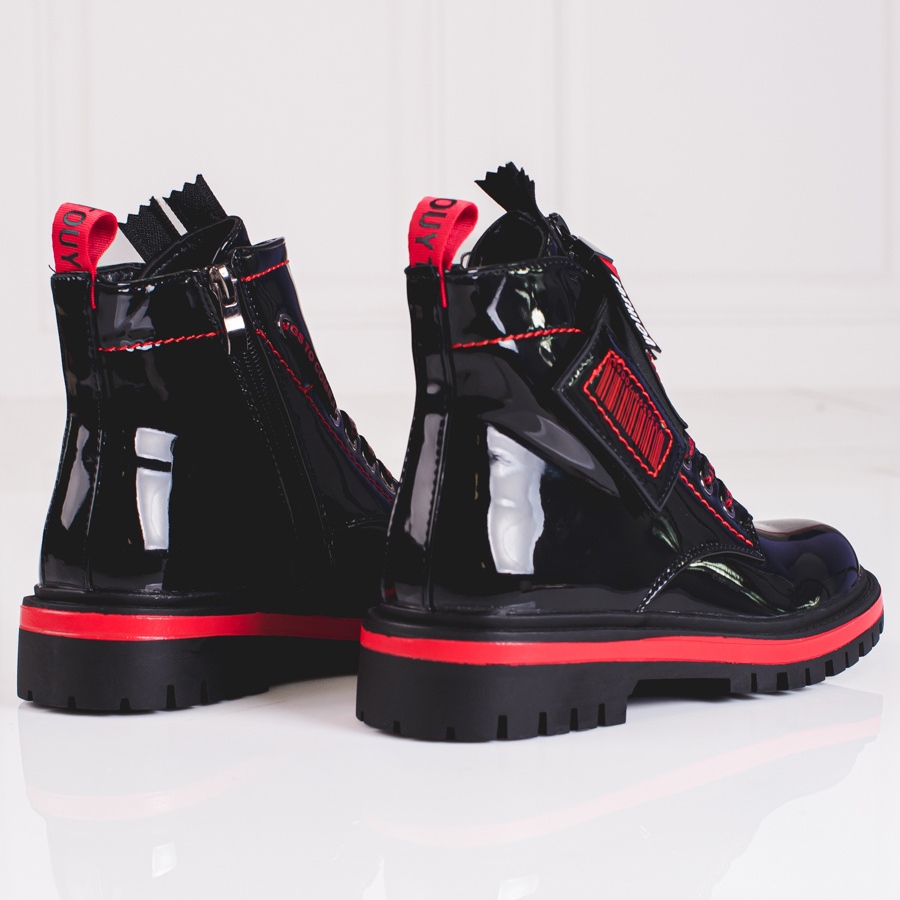 Detalii: Cizme de fete din piele lacuita cu insertii rosii Shelovet negru roșu
