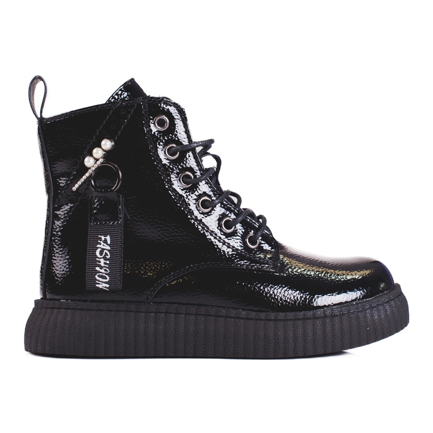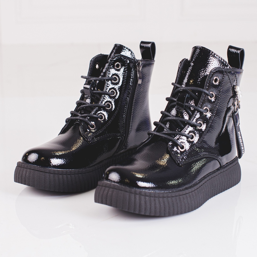 Detalii: Cizme de fete din piele lacuita pe platforma Shelovet negru