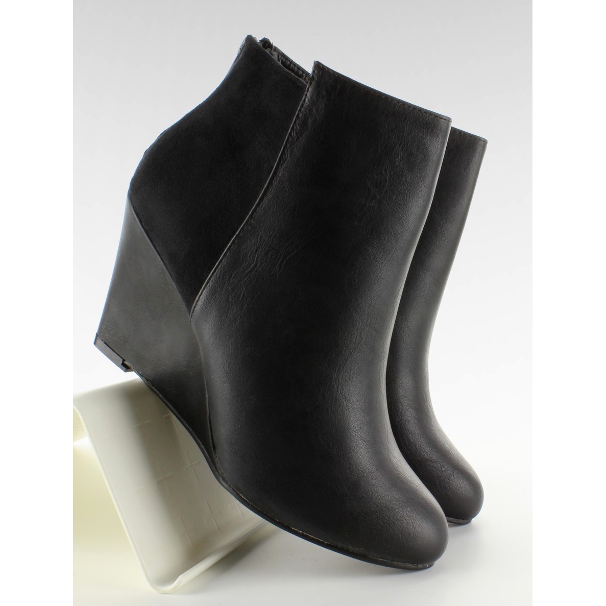 Botine de damă clasice, negre, care combină un efect moale de piele de căprioară cu o textură netedă. Datorită vârfului bine modelat și rotund, arată elegant pe picior, iar pană de 8,5 cm asigură prelungirea optică a siluetei păstrând în același timp stabilitatea. Fermoarul din spate ușurează încărcarea, iar izolația face cizmele perfecte pentru zilele mai reci.