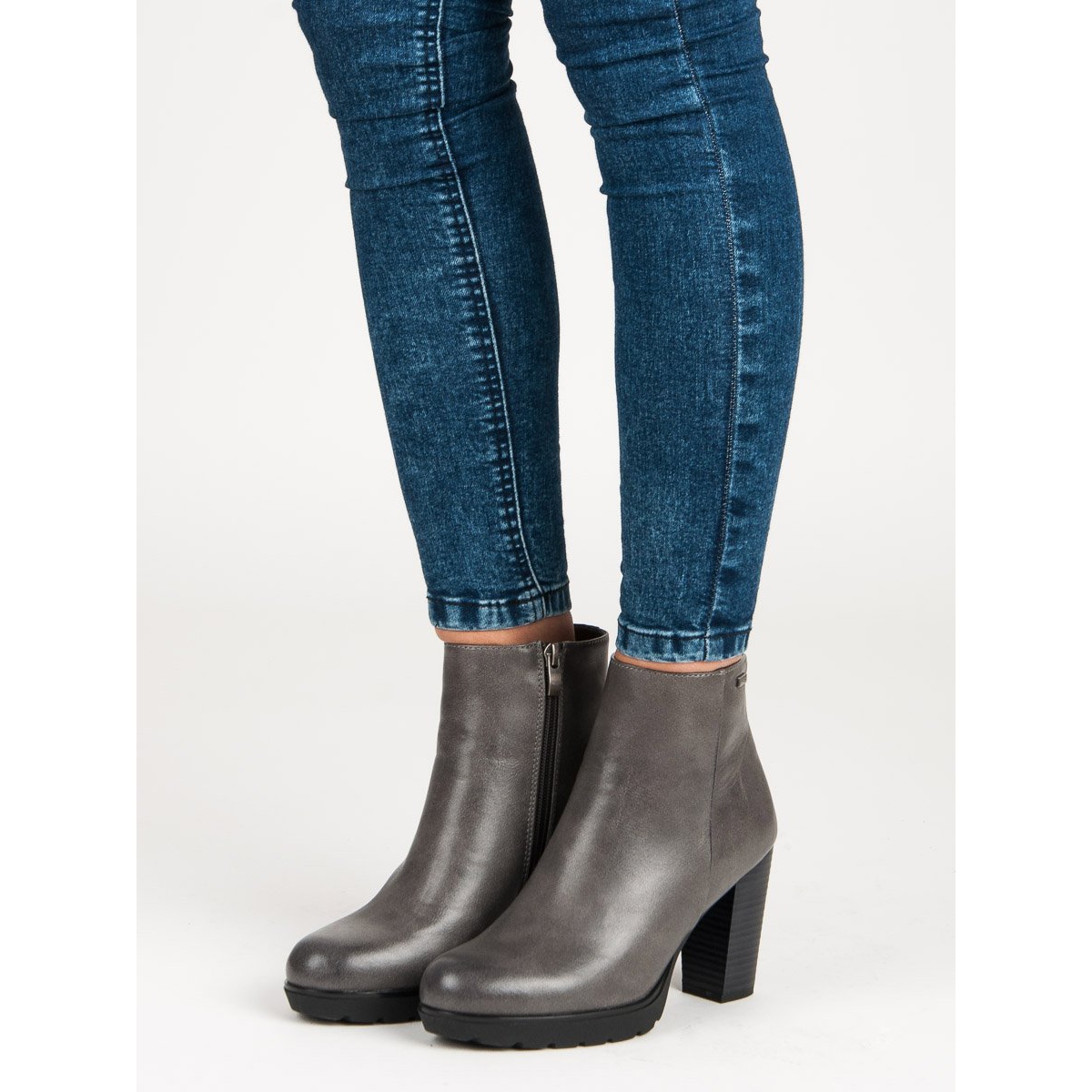 Culoarea grafit cu nuanțe delicate de argintiu atrage atenția, iar designul minimalist subliniază că există forță în simplitate. Un toc bloc solid de 9,5 cm înălțime garantează stabilitate și confort în utilizare. Datorită acesteia, picioarele devin mai subțiri și întreaga silueta devine elegantă.