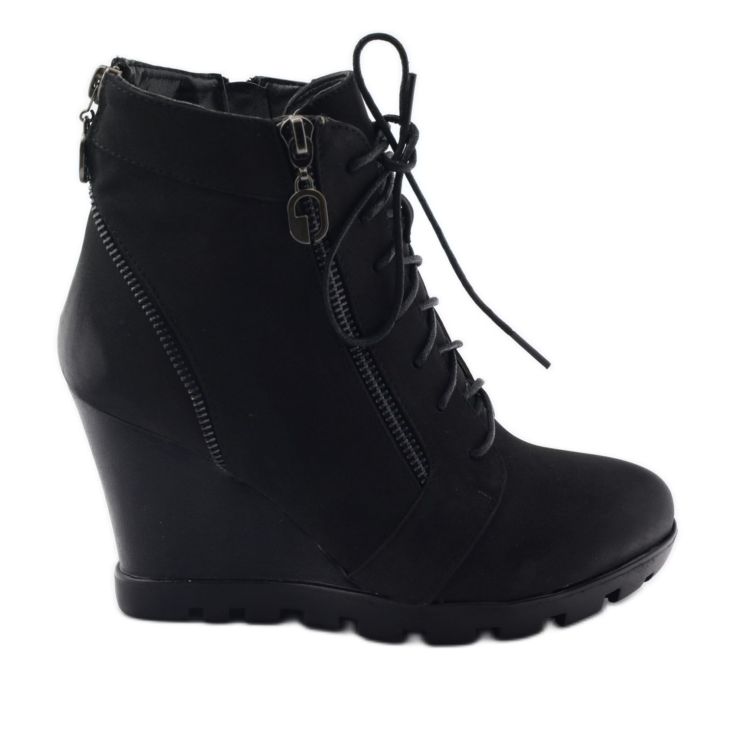 Un toc cu pană de 8 cm înălțime și o platformă de 2 cm adaugă lejeritate optică și fac mersul în aceste bocanci extrem de confortabil. Datorită notei lor sportive, botinele SA25 se încadrează cu ușurință în tendințe, iar decorațiunile lor subtile sub formă de fermoare le adaugă caracter.