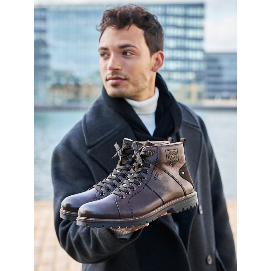 Detalii: Cizme de iarna impermeabile pentru barbati izolate cu lana de oaie Rieker F3602-25 maro