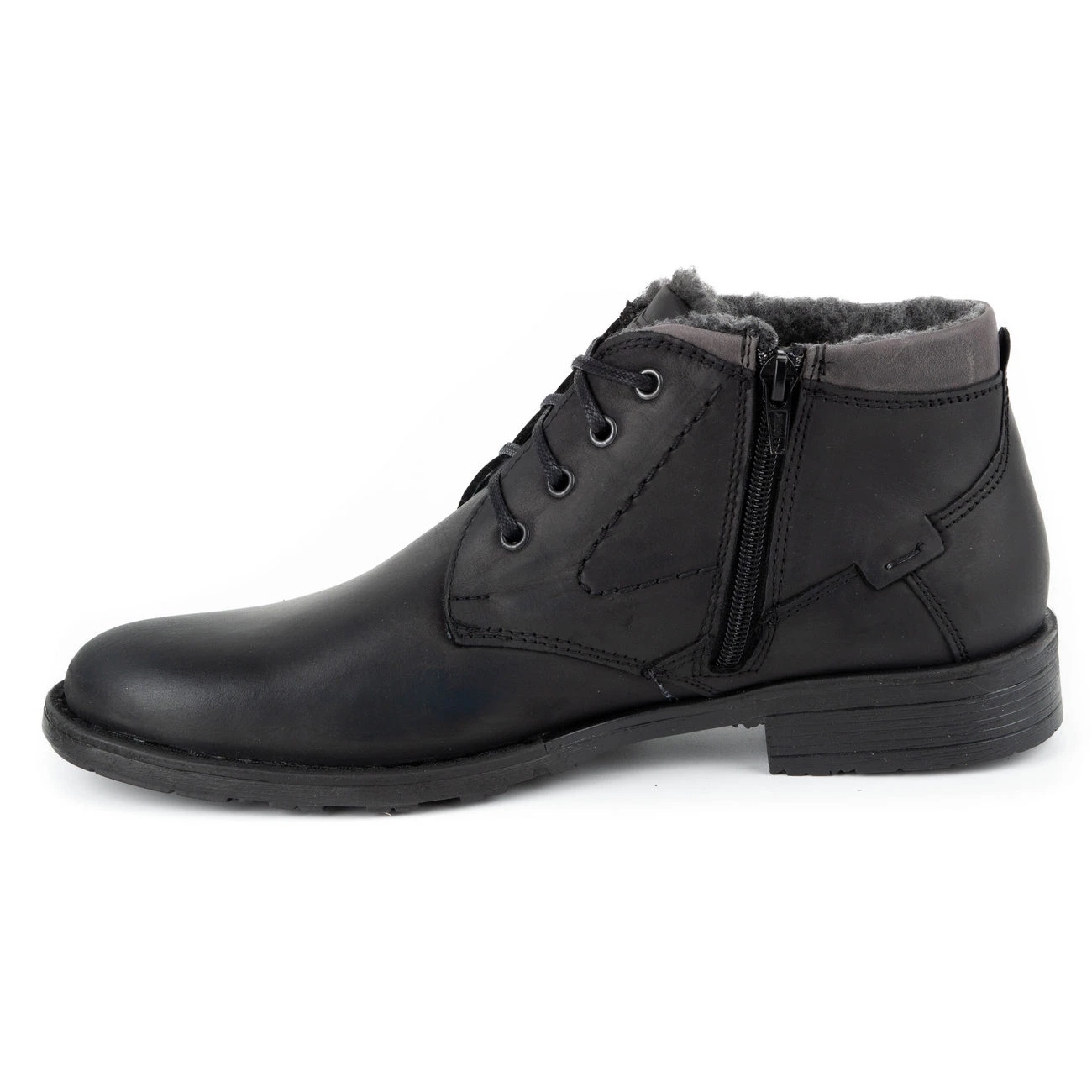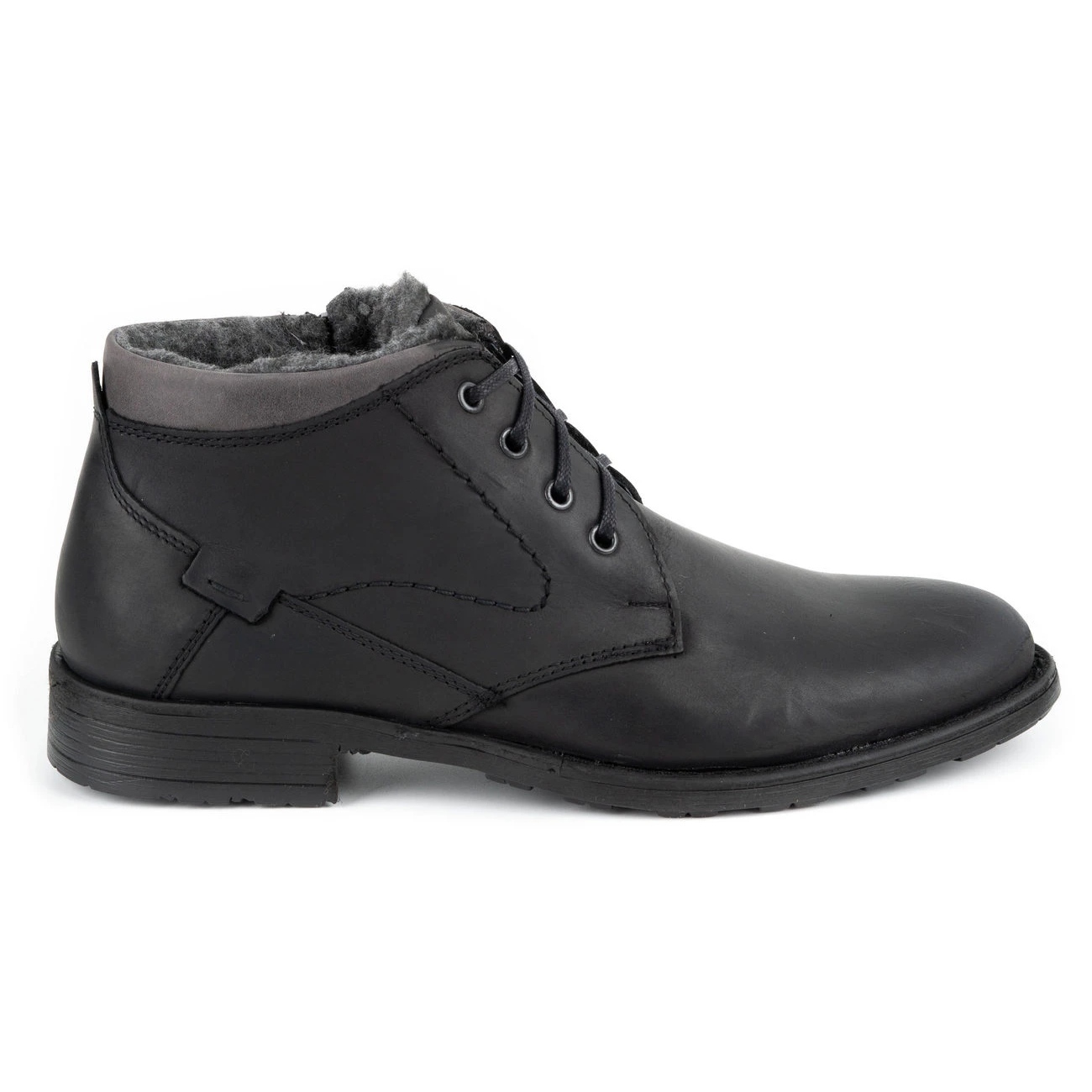 Polbut Polbut Cizme de iarnă pentru bărbați din piele C16S negre cu gri negru