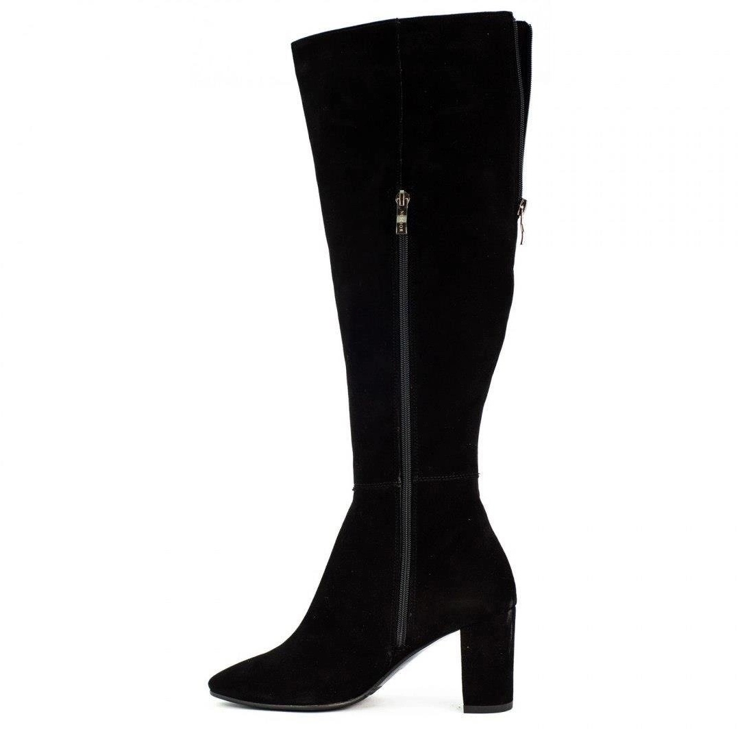 Înălțimea totală de aproximativ 53 cm și designul până la genunchi adaugă eleganță și fac picioarele să pară mai subțiri. Izolația din interiorul pantofului garantează confort chiar și în zilele mai reci, iar finisajul moale și branțul profilat asigură un suport adecvat piciorului. Un avantaj suplimentar este inchiderea cu fermoar, care usureaza incaltarea si scoaterea cizmei.