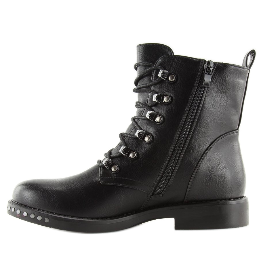 Va prezentam cizme de dama negre de lucru ML15 black - alegerea perfecta pentru sezonul de toamna! Acești pantofi înalți eleganti se remarcă prin șireturi originale care seamănă cu modelele clasice de trekking. În plus, niturile atrăgătoare de pe partea din față a tălpii le conferă un caracter la modă care atrage atenția.