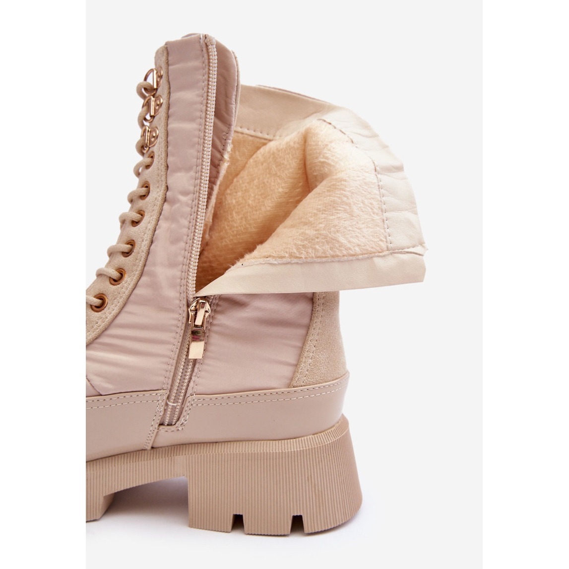 Detalii: Cizme de muncitor izolate bej pe toc plat de Saranema