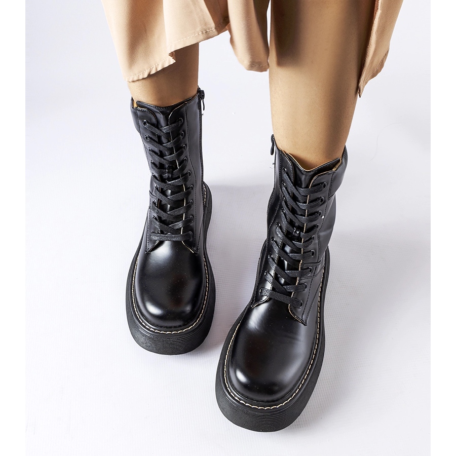 Inna marka Cizme de muncitori izolate negre pe platforma Davi negru