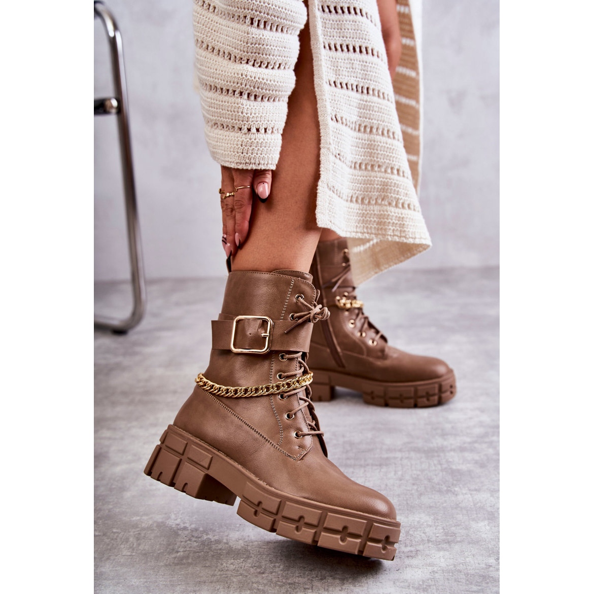 Detalii: PG1 Cizme de muncitori la modă cu lanț maro Solesso