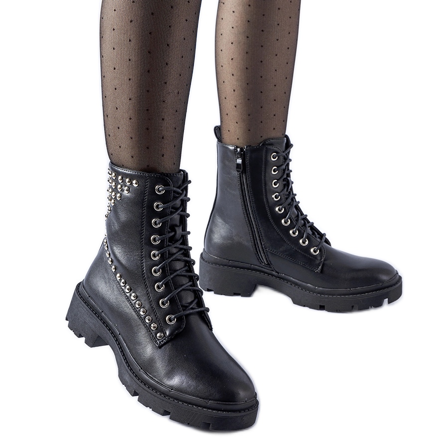 Inna marka Cizme de muncitori negre decorate cu crampoane Bobbitt negru
