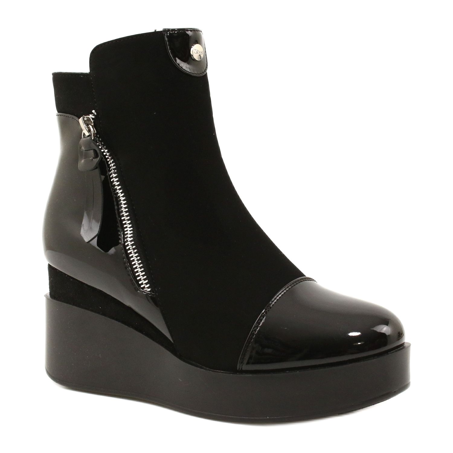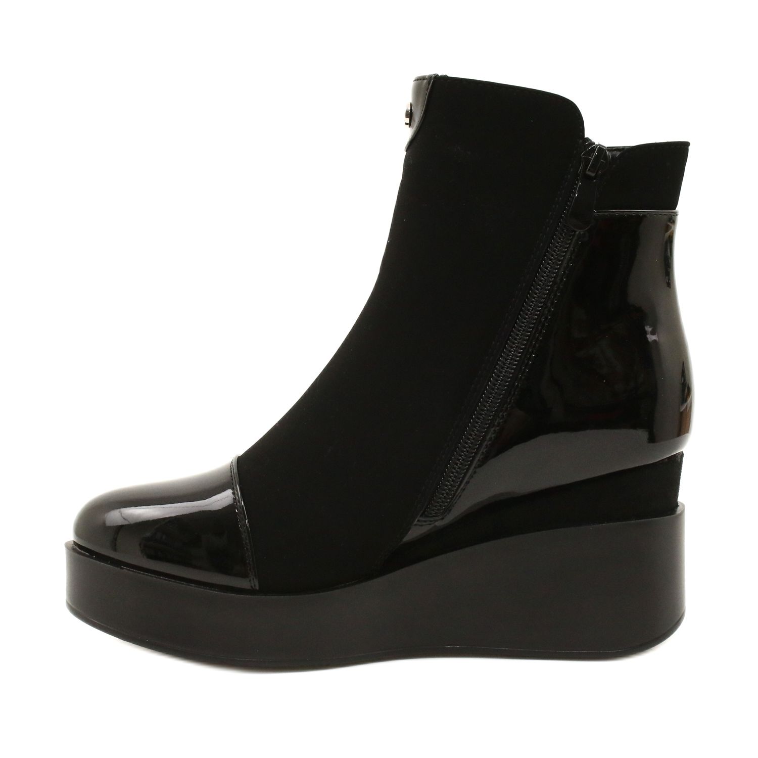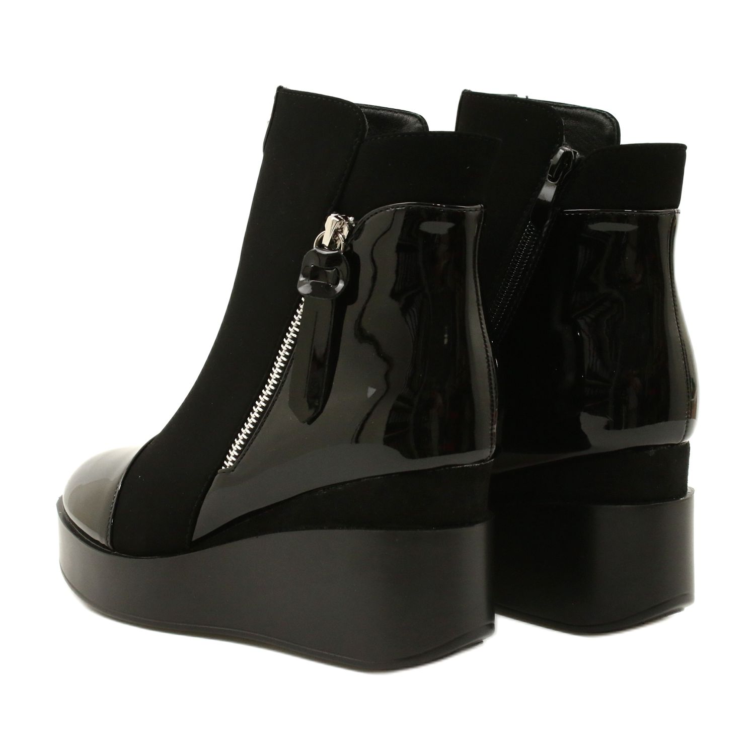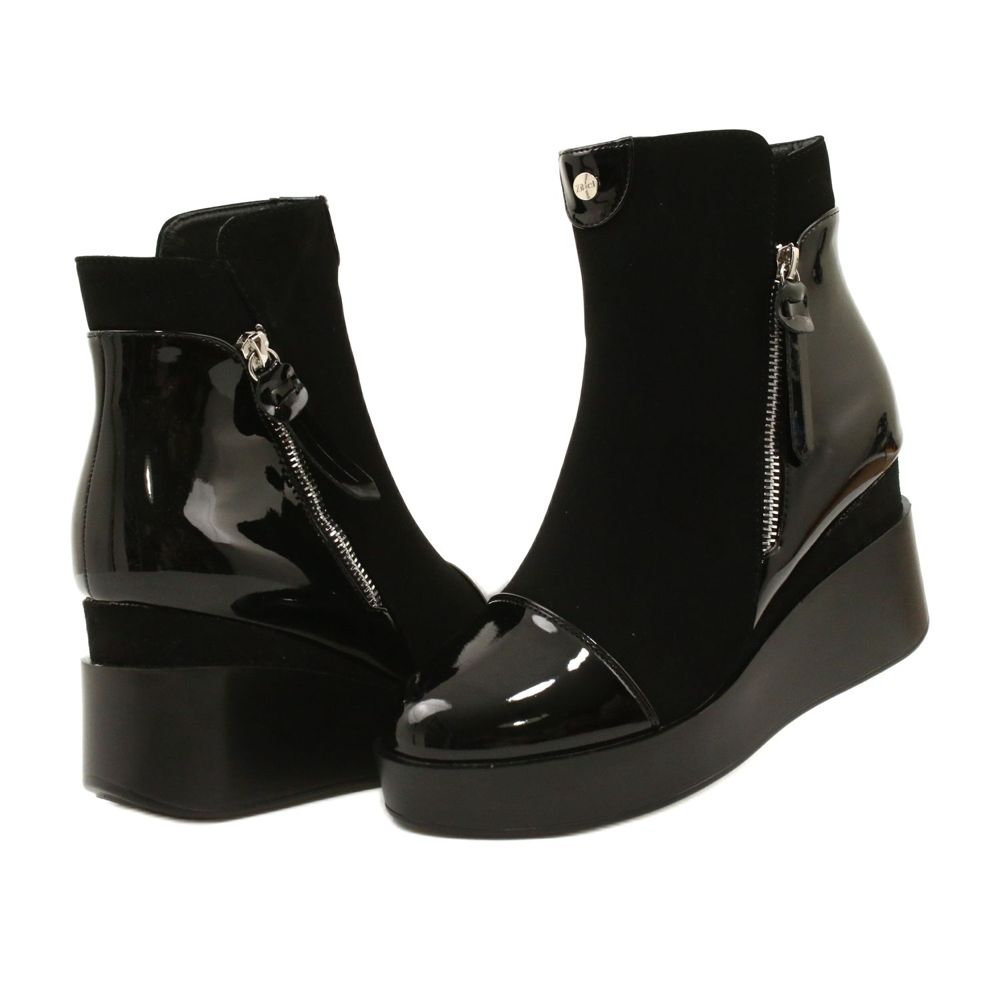 Detalii: Cizme de piele de căprioară pentru femei pe o pană/platformă groasă H2180 negru