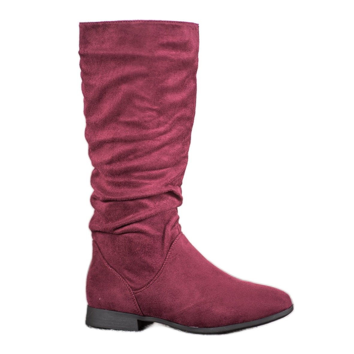 Cizme peste genunchi din piele intoarsa SHELOVET - rosii