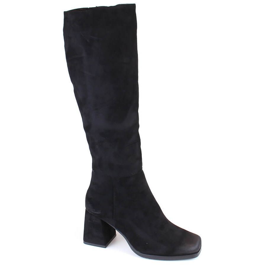 Materialul exterior este piele ecologica de piele intoarsa, care nu numai ca arata extraordinar de impresionant, dar este si rezistenta si usor de intretinut. Cizmele negre din piele intoarsa cu toc stabil, inalt de 7,5 cm, iti vor prelungi optic silueta si in acelasi timp vor oferi confort in timpul mersului.