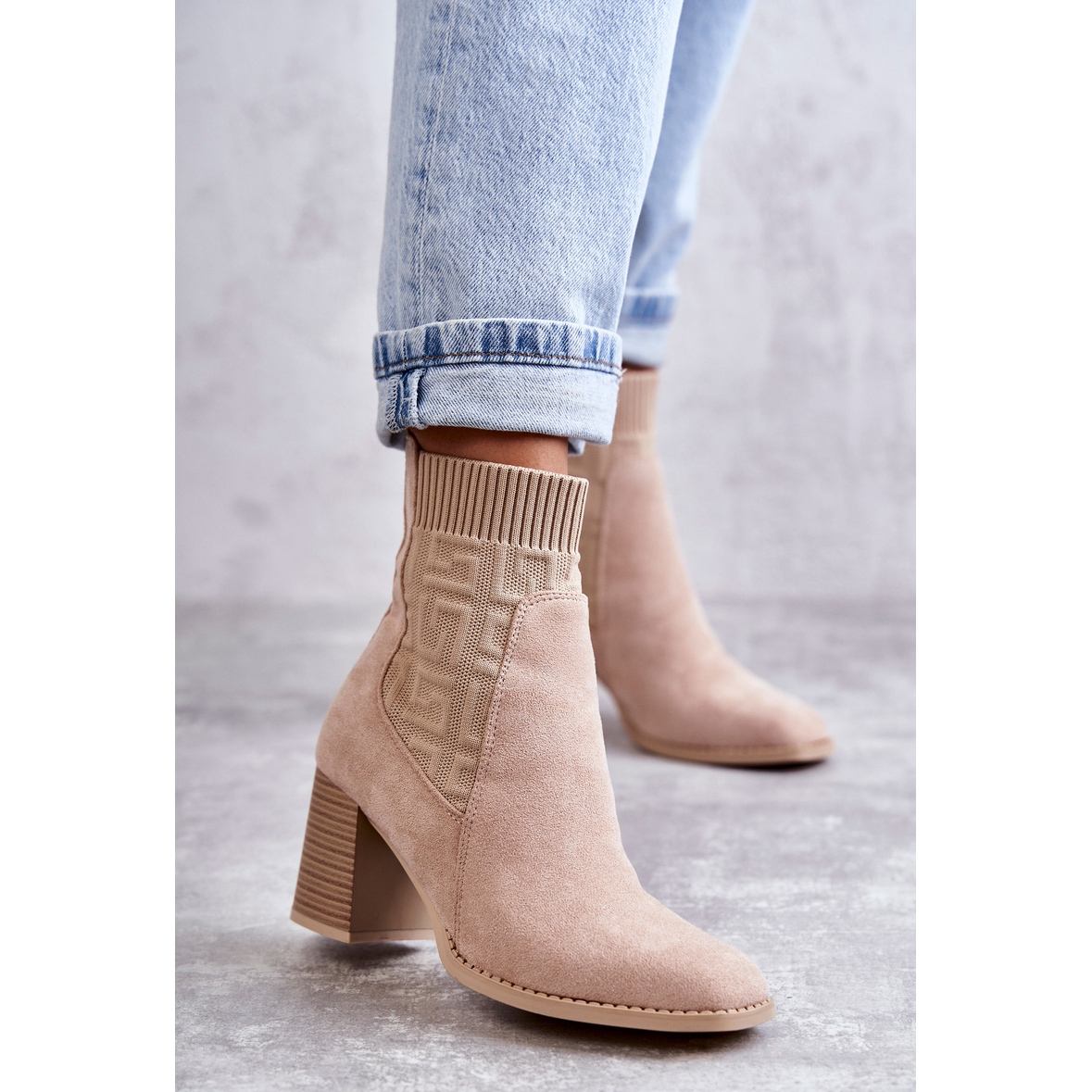 FE1 FE1 Cizme de piele intoarsa de dama cu un ciorap Bej Montes