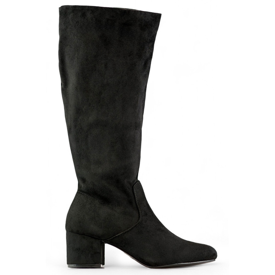 Detalii: Cizme de piele intoarsa neagra pana la genunchi, cizme de dama cu toc joase negru