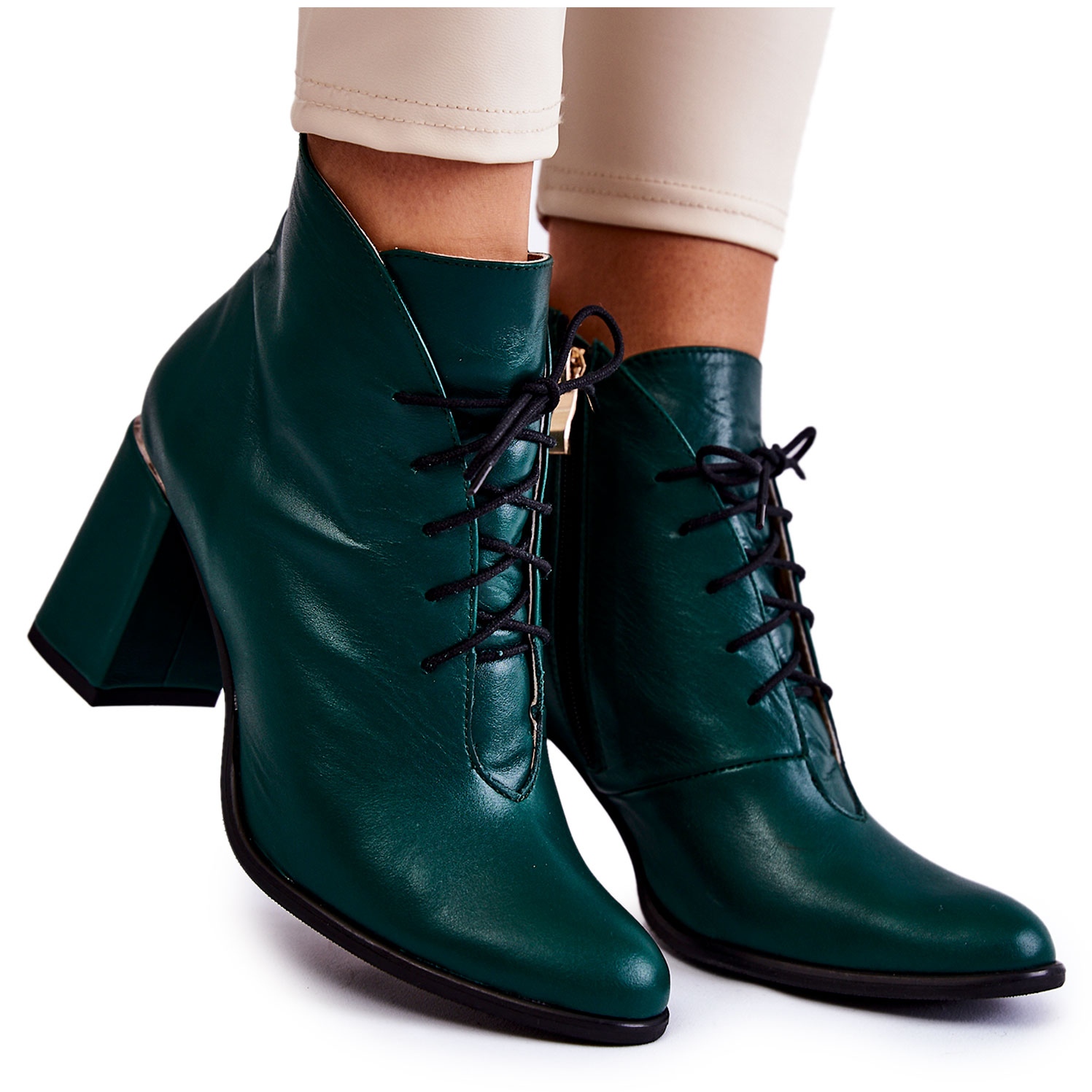 Descoperiți eleganța și confortul cu botinele de damă din piele PA2 într-o culoare verde unică. Aceste botine clasice sunt confectionate din piele naturala de cea mai inalta calitate, ceea ce asigura nu numai durabilitate, ci si un aspect stilat. Datorită izolației realizate dintr-o pătură caldă de pantofi, picioarele tale se vor simți confortabil chiar și în zilele cele mai reci.