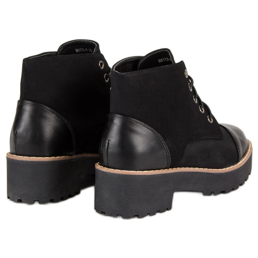 Cizmele Rock worker în negru sunt un must-have în garderoba oricărui iubitor de modă. Acești pantofi eleganti au un design original care impresionează prin modernitate și caracter. Datorită unui toc gros și atrăgător de 3 cm înalt și unei platforme solide, fiecare pas în aceste cizme este o combinație de confort și modă.