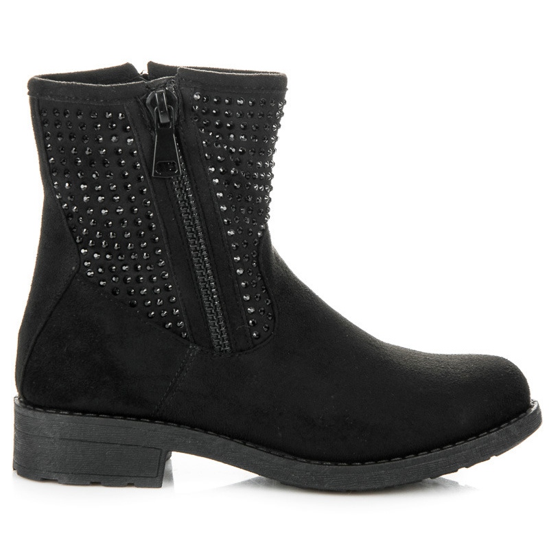 Cu un toc plat de 5 cm, aceste botine sunt confortabile și confortabile de purtat, perfecte atât pentru zilele lungi la serviciu, cât și pentru serile în oraș. Detaliile suplimentare sub formă de strasuri și știfturi le conferă un accent rock la modă.