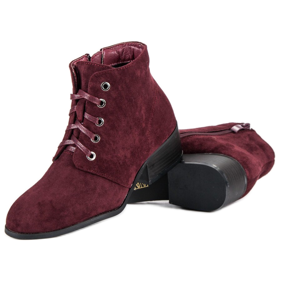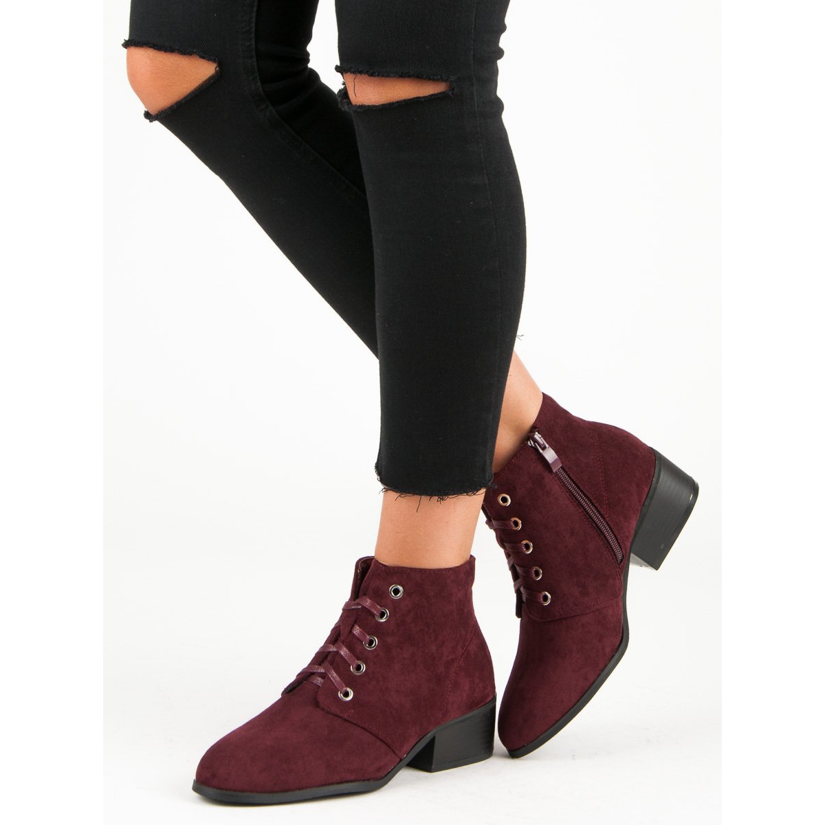 Botinele elegante și confortabile de culoare burgundă sunt un must-have pentru sezonul de toamnă și iarnă! Confectionati din piele intoarsa ecologica, acesti pantofi cu siret cu varf rotunjit nu numai ca arata extrem de elegant, dar ofera si confort maxim atunci cand sunt purtati. Datorită unui toc jos, stabil de 4 cm, sunt o soluție perfectă pentru ieșirile de zi cu zi, fără a-ți împovăra picioarele.