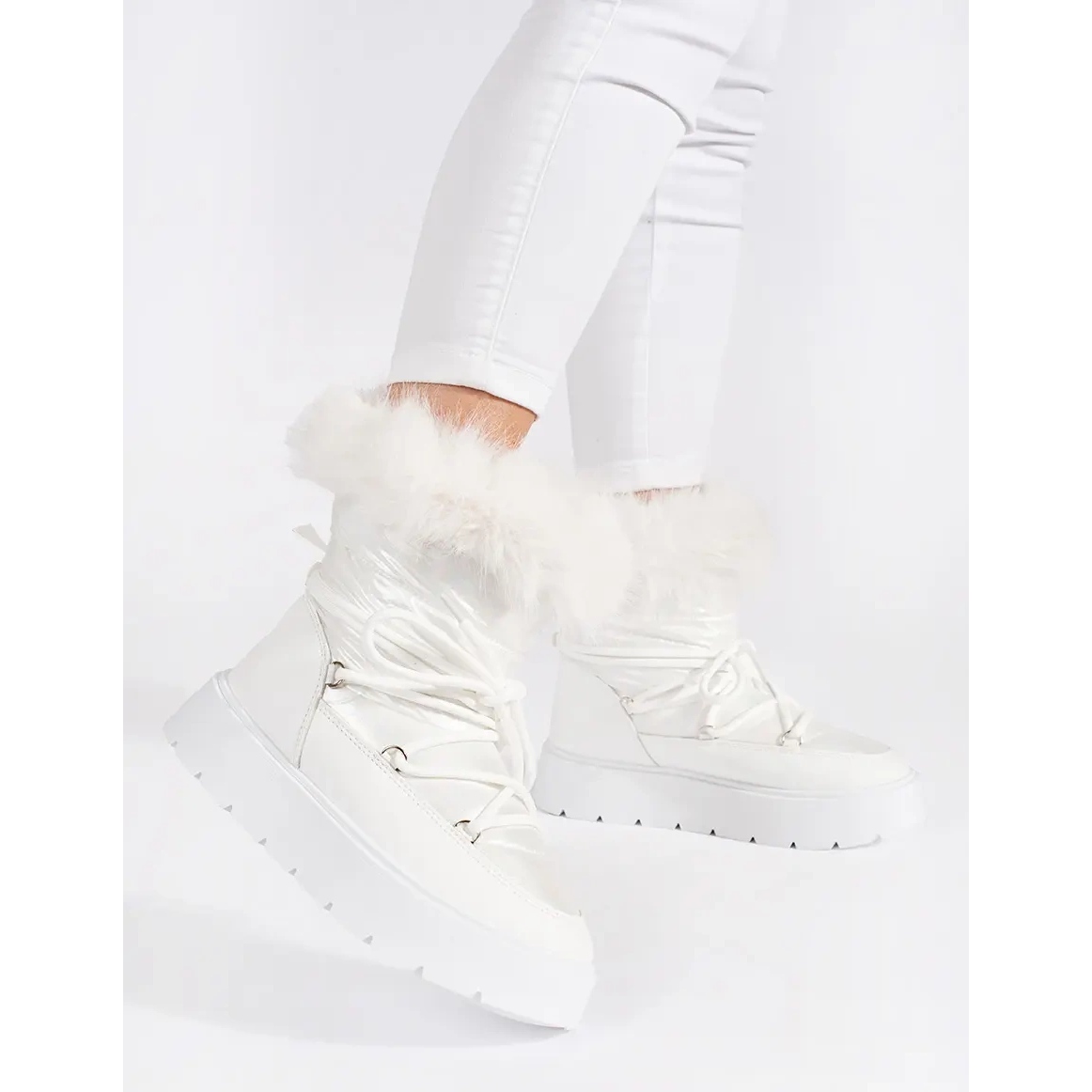Inna marka Cizme de zăpadă albe de damă cu blană pe talpă groasă