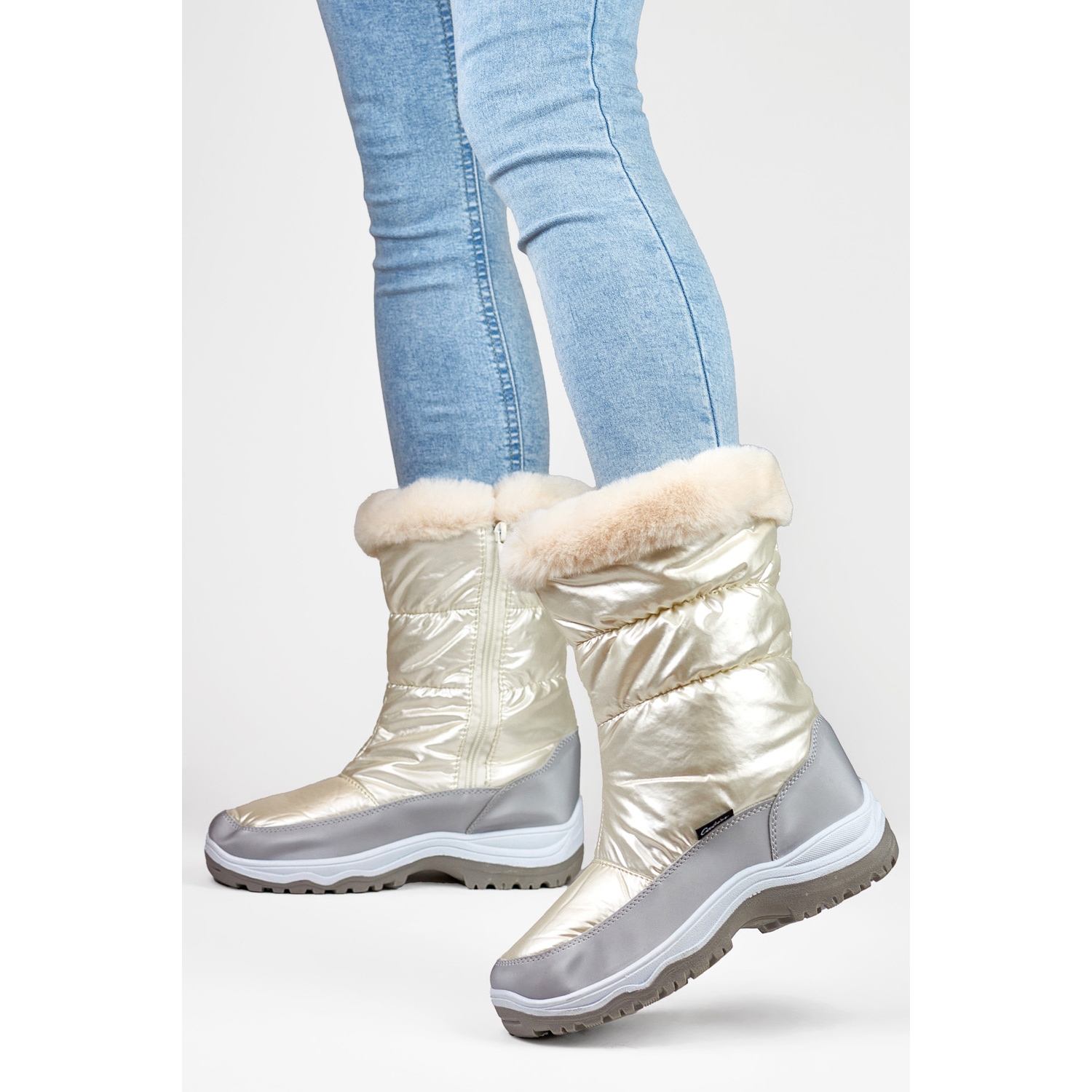 - Model: cizme de zăpadă înalte pentru femei cu blană (ECRU/gri)