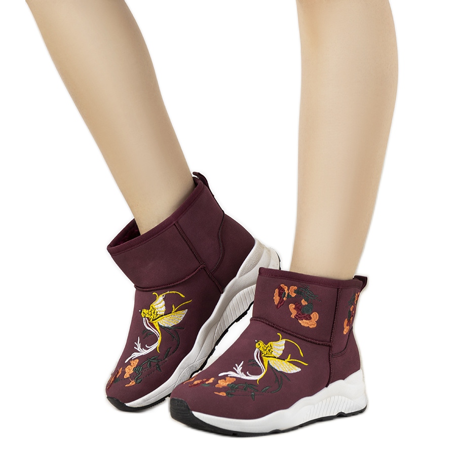 Detalii: Cizme de zăpadă Burgundia cu broderie Jamil roșu