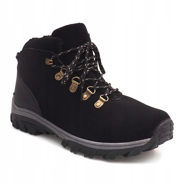 Cizmele de zăpadă izolate 83B în negru sunt alegerea perfectă pentru bărbații care caută încălțăminte de încredere pentru condițiile de iarnă. Realizate dintr-un material asemănător eco-nubuck, aceste cizme de zăpadă înalte combină eleganța cu funcționalitatea. Datorită tălpii solide, sintetice, oferă confort și siguranță pe suprafețele alunecoase, ceea ce le face partenerul perfect în condiții meteorologice dificile.