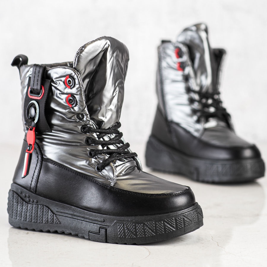 Detalii: Seastar Cizme de zăpadă calde pe platformă negru argint gri